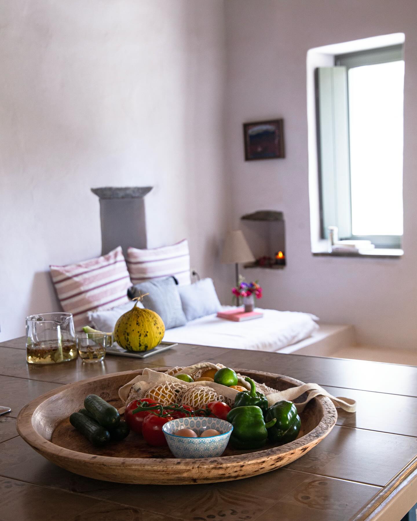 Guests can explore the farm’s cultivated landscape, including the olive grove, vineyard, vegetable garden, and small winery. The setting lends itself to walking, observation, and seasonal engagement rather than activity-led stays. At intervals throughout the year, retreats focused on well-being and reconnection with place are hosted on the property, complementing a stay otherwise shaped by calm, privacy, and immersion in the island’s interior.