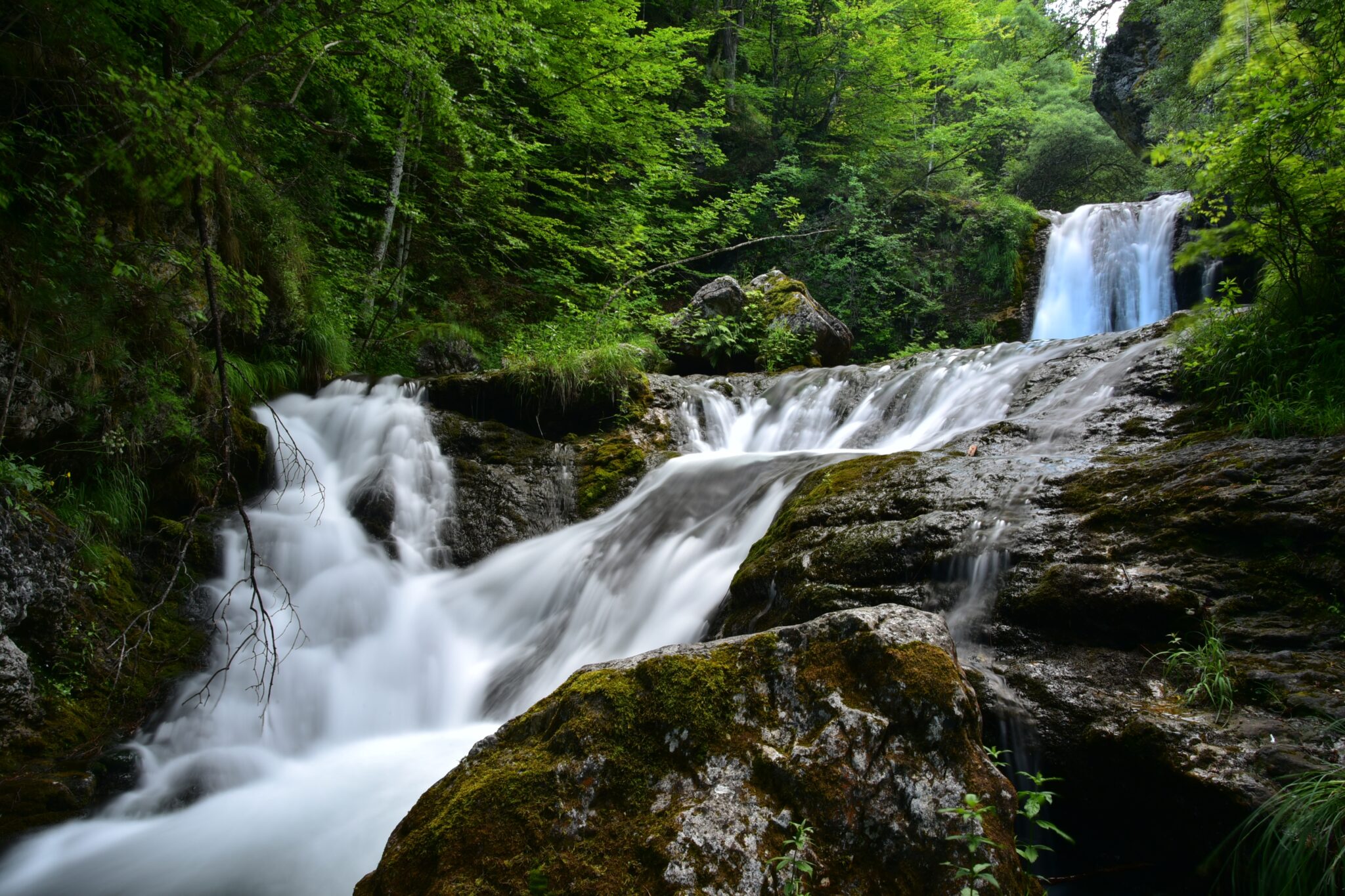 The effect is not a scattering of drops or a small plunge pool but a hanging screen of water that you enter by moving up the riverbed itself, often knee-deep in the stream. Access depends on water levels, which is why the route is mainly associated with the warmer part of the year, but spring is exactly when the setting has force and freshness.