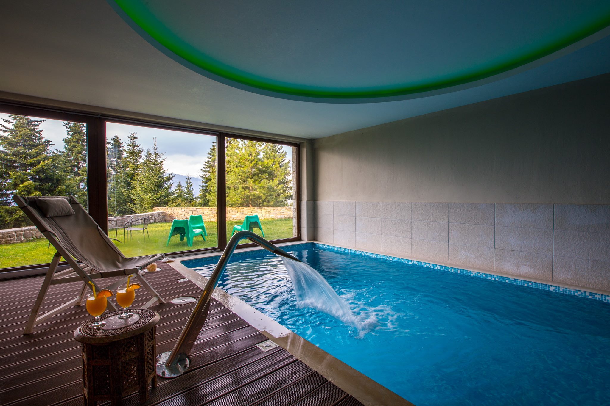 or at the equally pleasing Orizontes Tzoumerkon nestled in a lush forest of cedars and firs on the slopes of Tzoumerka Pramantas at the foot of Strogoula, The hotel has a wellness center with a heated swimming pool with breath-taking views of the mountain slopes, modern gym facilities, sauna and hammam.