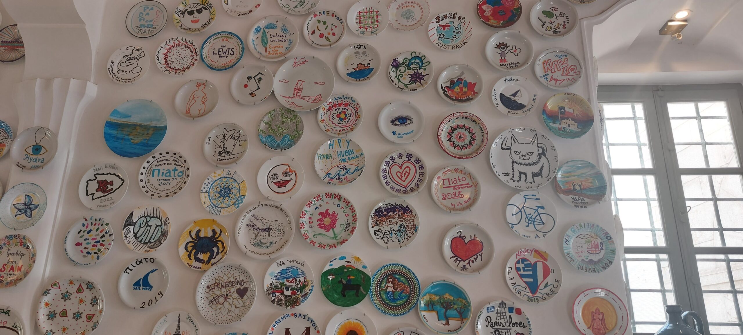 At dinnertime, my friend and I finally met Angelika, Skyrah and Kai further along the buzzy harborfront for a delicious traditional Greek meal at Piato Taverna. Stepping into the restaurant to visit the bathroom, I was overwhelmed by the sight of walls covered in painted plates and upon asking the staff about the unusual decor, I was told they are painted by customers. From children to A-list celebs like members of Pink Floyd and Pamela Anderson, guests are often inspired to leave their creative mark for others to visually savor.