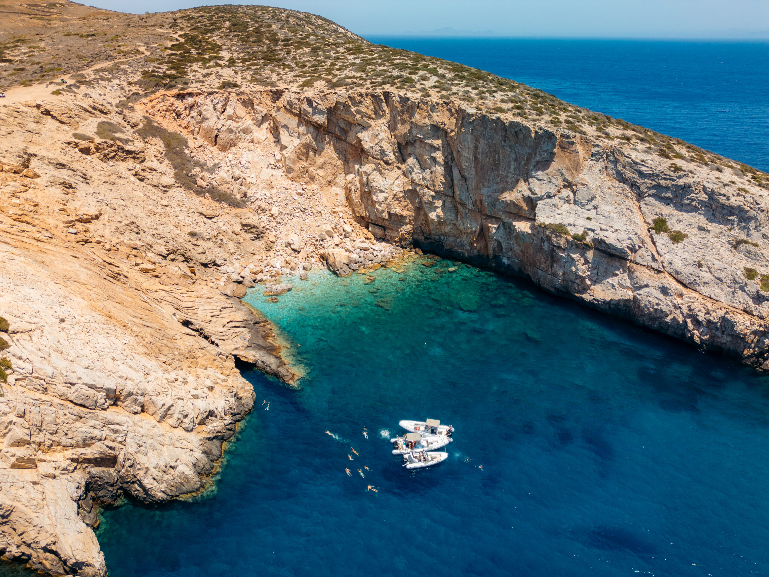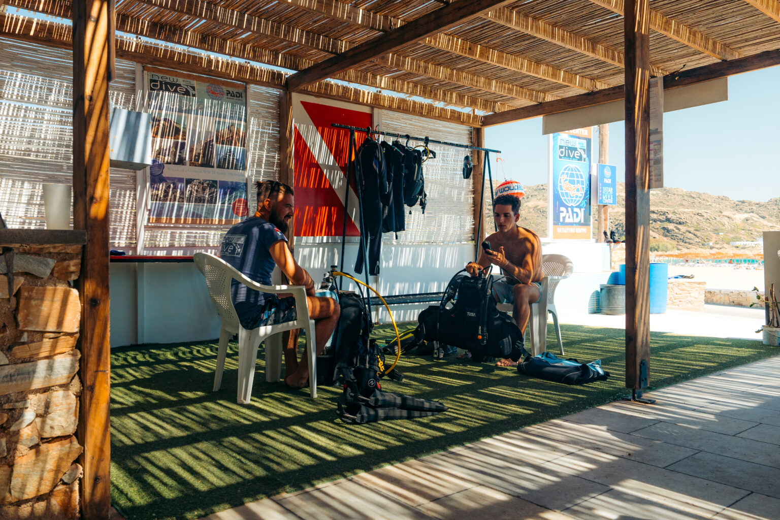 In the port and at Mylopotas, some companies offer services for exploring the underwater world of Ios through scuba diving and snorkeling. They provide the equipment, boats to reach the diving spots, and training for both children and adults by certified divers. Ideal locations for these activities are Koumbara Beach, with a maximum depth of six meters, the islet Diakofto in the Ormos area with a maximum depth of 28 meters, Valmas Beach with a sandy bottom and rocks, and Fanari Cape for experienced divers, with a maximum depth of 21 meters and a rocky bottom.