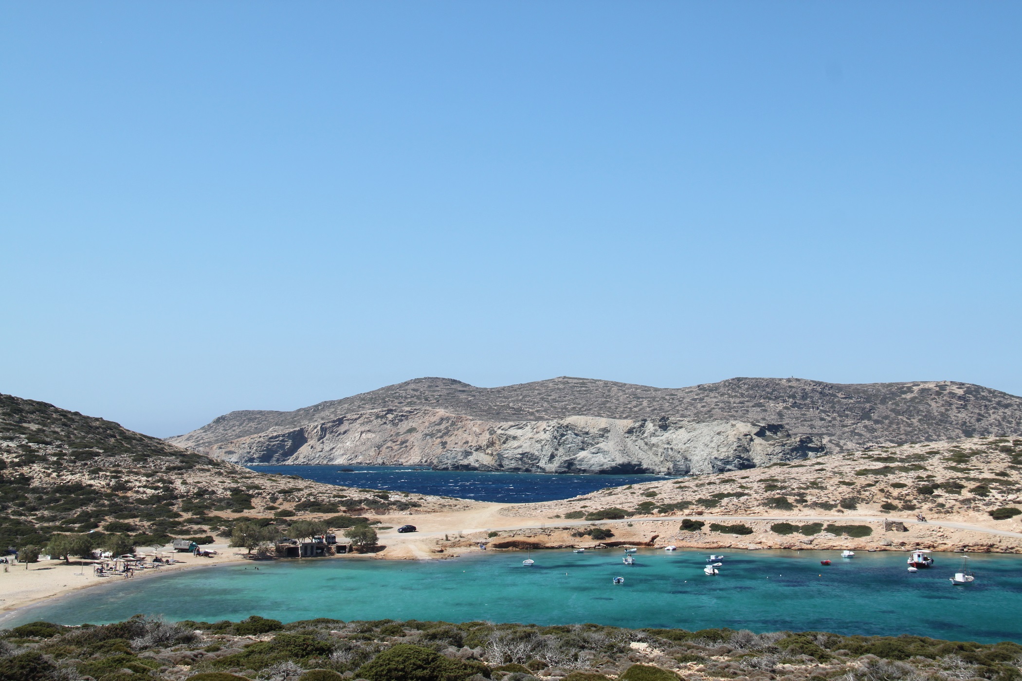 Kalotaritissa: A pretty bay sheltered from the wind with the sandiest beach in Amorgos, Kalotaritissa is easily accessed by car, following the road to Arkesini. It has umbrellas, sunbeds, a beach bar, and tourist boats depart from here for the magical island of Gramvoussa. Make a detour on the way to the beach to visit the eerie shipwreck of the ‘Olympia’ in a nearby cove.