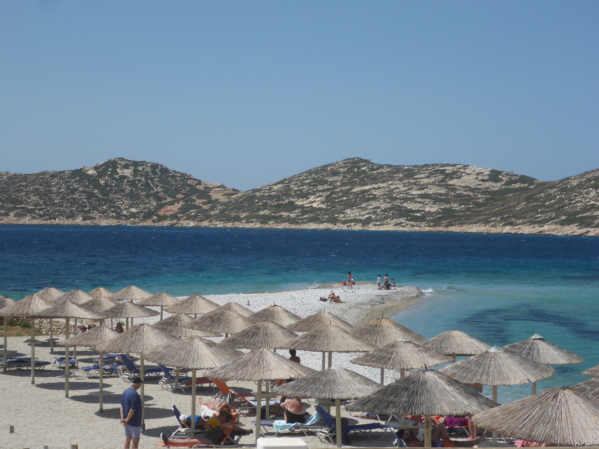 Levrossos: A sandy beach, about 20 minutes walk from Aegiali, it is one of the better beaches in the area. It used to be predominantly nudist, but nowadays it is popular with families with young children as the water deepens gradually and there is shade from trees. You can visit by boat, bus, or car, but parking spaces are limited. The path, starting at the parking area, is downhill and includes several steps, so it is not suitable for people with limited mobility. The beach is not serviced, but there is a taverna where you can eat, and you can also walk further to the smaller beaches of Psiliammos and Choklakas.