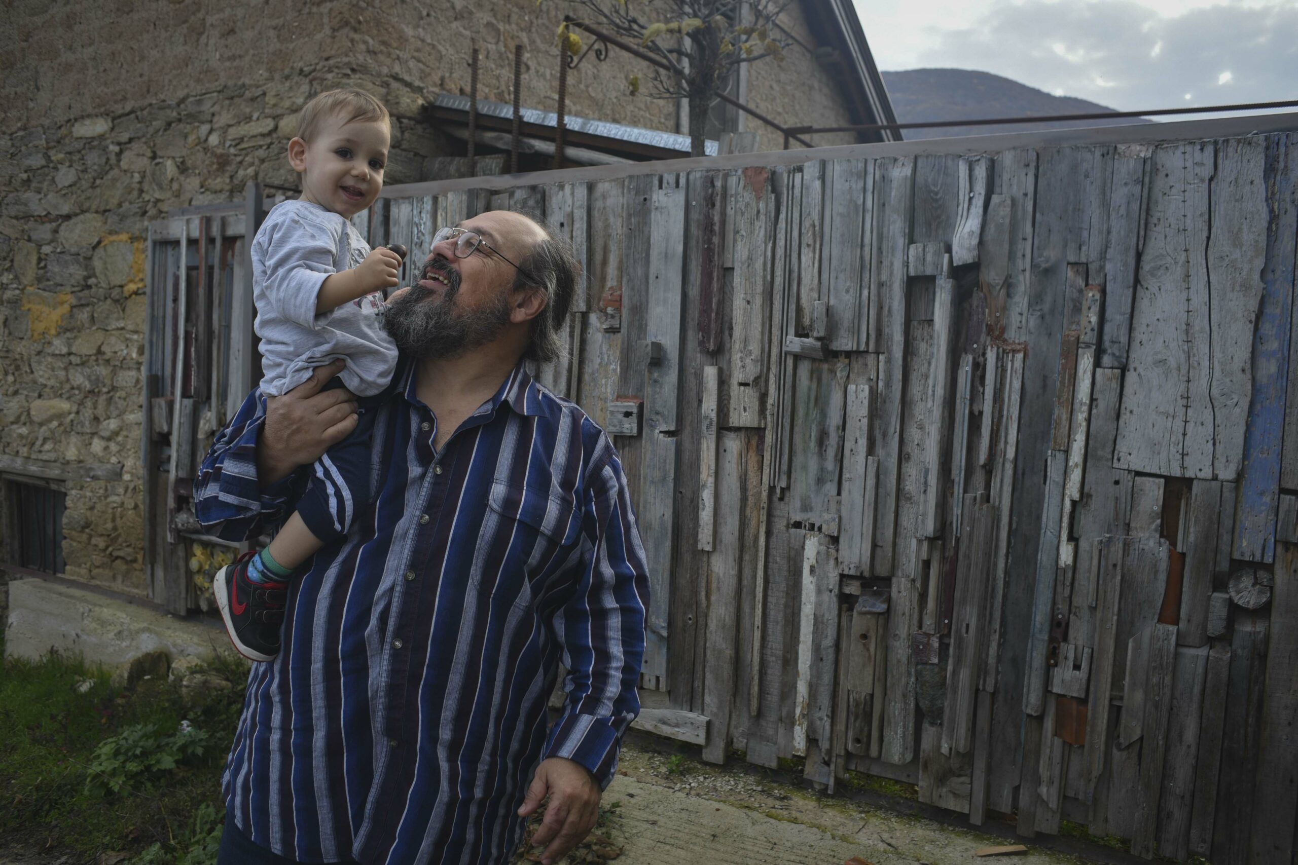 Artists, Magda Hristopoulou and Haris Kontosfiris, welcome me with a smile to the fragrant orchard outside the gorgeous neoclassical building with a view of the Mal Tepe, they live in with their family. Their home is located in the village Skopia, 1,5 km outside Florina. Their five-year-old son, Orfeas, is playing on the quiet uphill alley outside the door, building things with concrete. My memory recalls images of the past with young Haris creating works of art using concrete.
