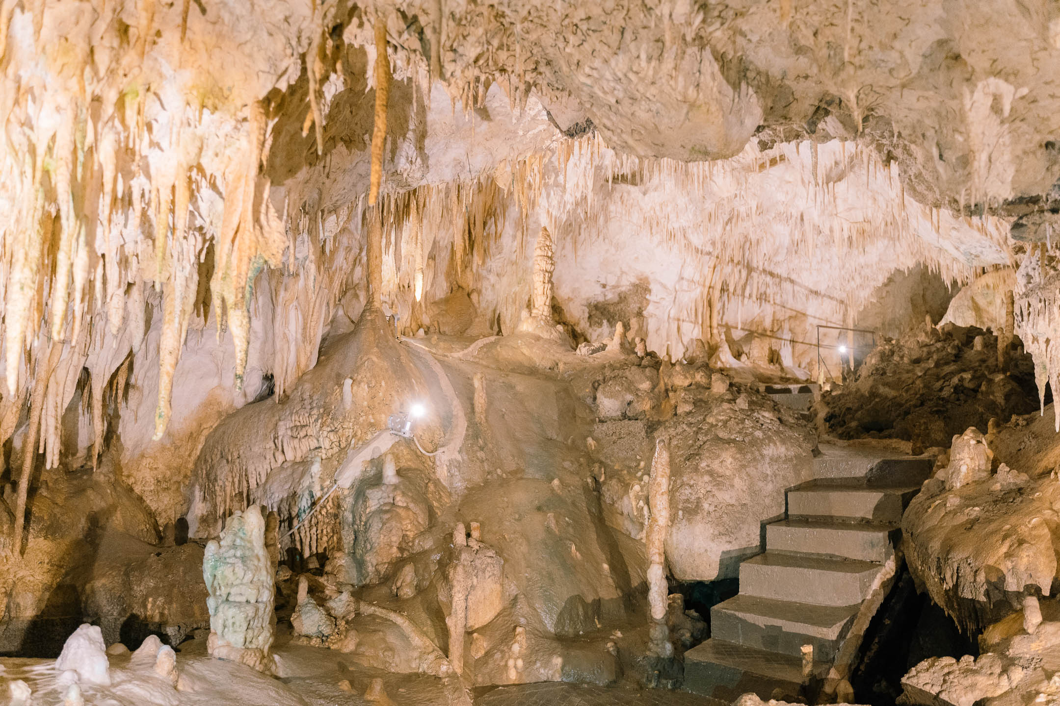 The highest level has collapsed and only parts of it survive. The middle level is 250 metres long, while the third level is essentially the bed of the underground river that is visible from the trail and which forms a two-metre high waterfall. All the beauty hidden in the depths of the earth; unique geological formations, domes, lakes in shades of pink, white and grey, and geological rooms with imaginative names, unfold as you wander through the cave.