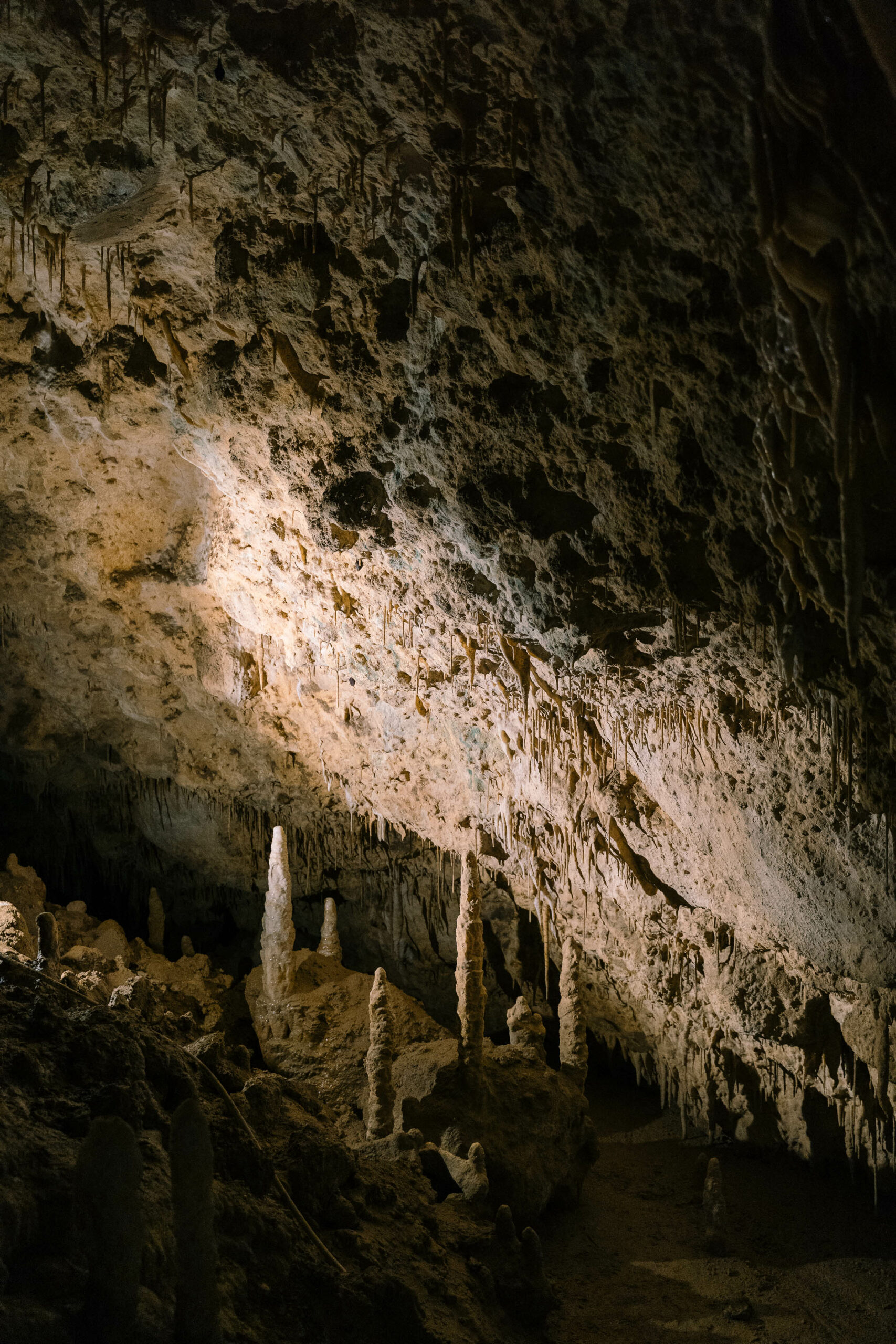 At the beginning of the route, impressive stalactites that reach the ground captivate with their intensity and testify to the age of the cave. The river chamber, majestic and noisy, is on the left. A staircase leads to the Great Hall, the ceiling of which is 20 feet high and the overall immersive feeling is compounded by the grey lake.