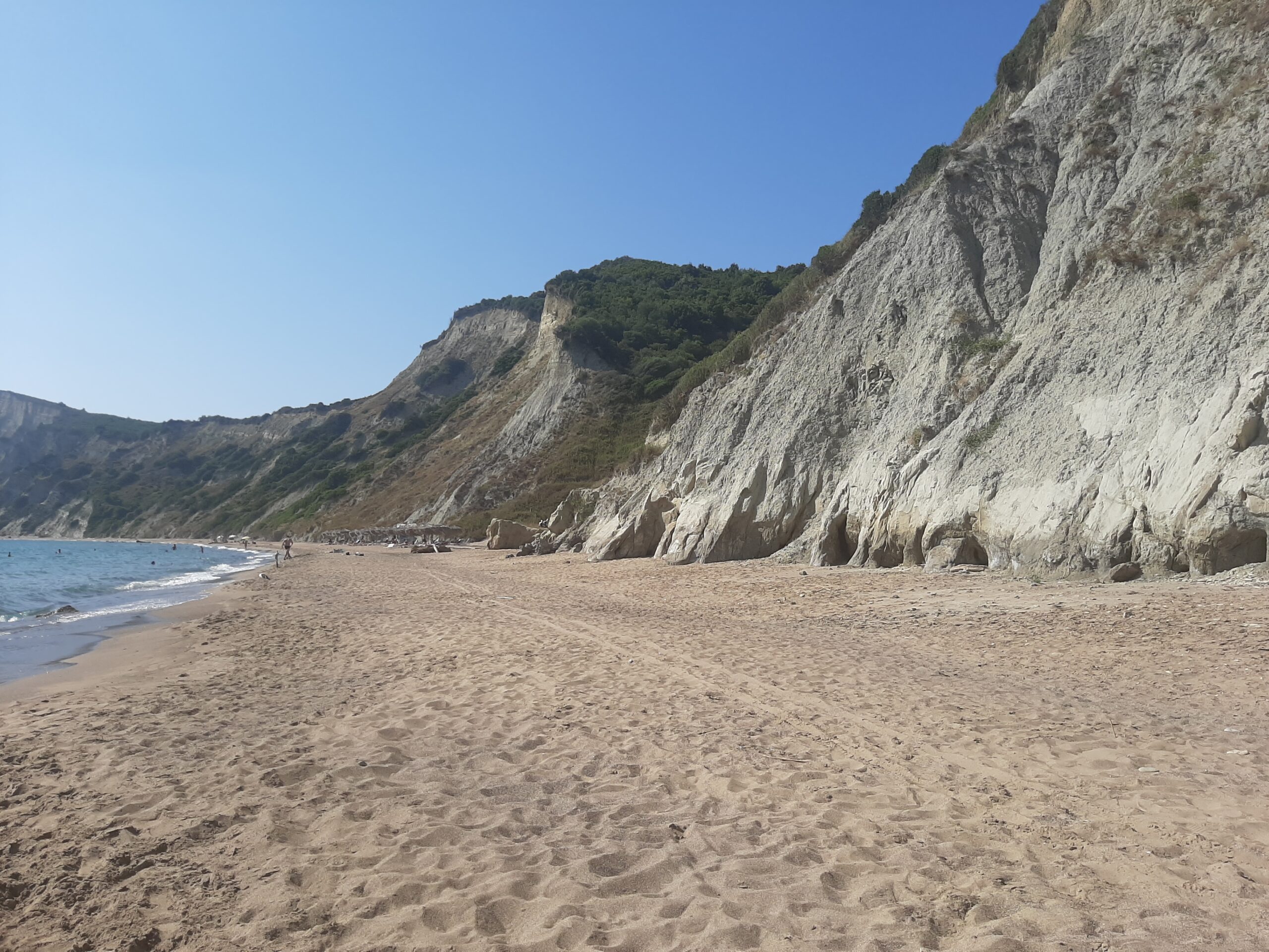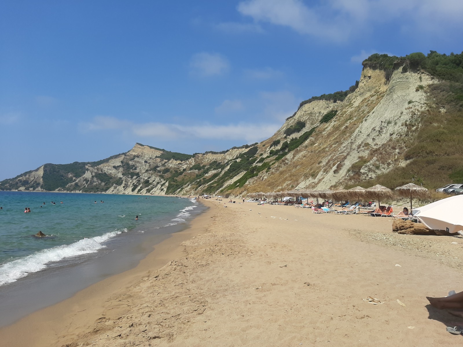 Whatever the origin of the name, the fact remains that Arkoudilas beach is a “blue jewel” of wild beauty and is definitely one of the beaches worth visiting on the beautiful Ionian island. We visited several of Corfu’s beaches, but this one was definitely one of the most beautiful. The steep rocks joining the golden sand are a fascinating sight.