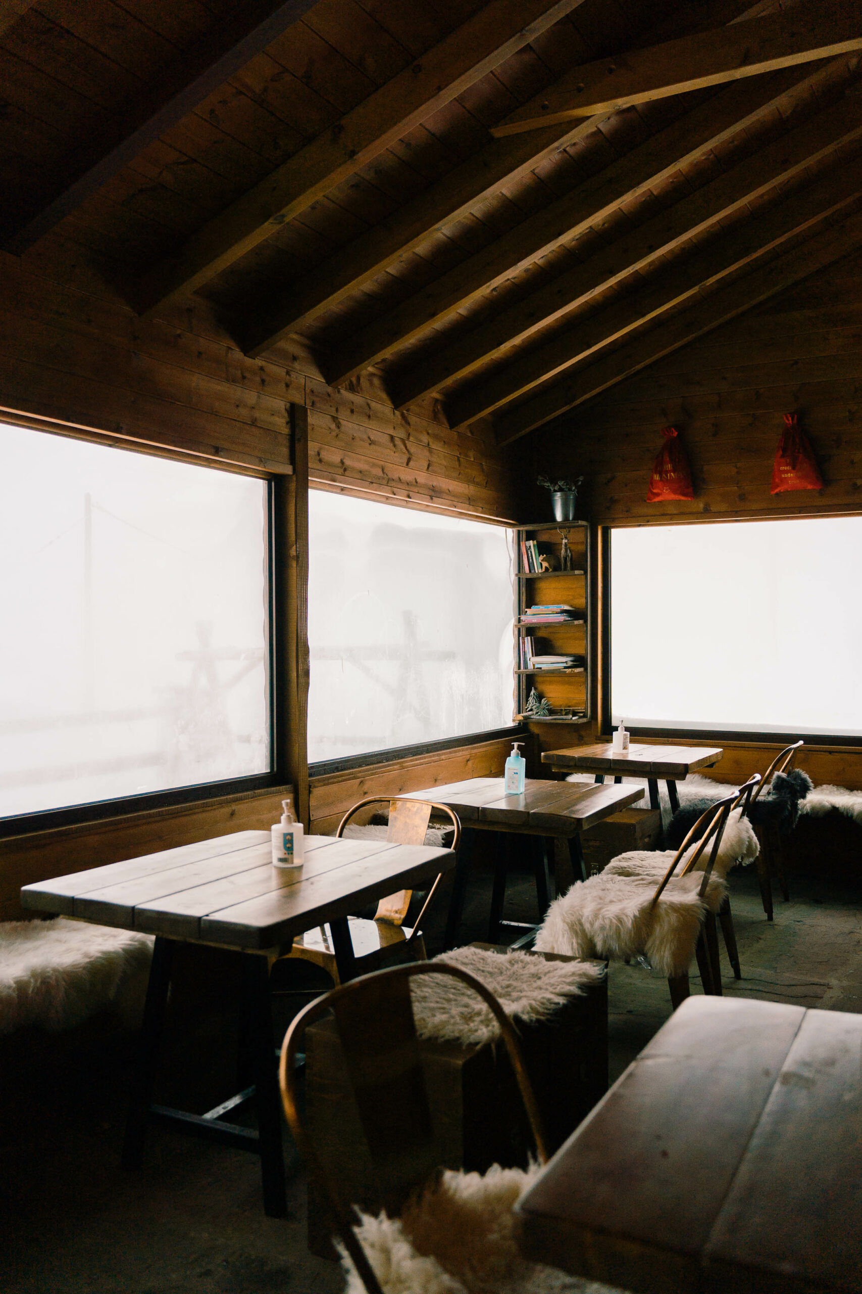 We head to the small chalet, since the larger, and more recently built one is closed today. A huge stove is burning, and we approach it, since it’s freezing cold. It’s a real joy being inside such a space, warm, surrounded by wood, while outside there’s a snowstorm. Christos, who knows the snow and the area better than anyone, tells us not to worry, the road will remain clear.