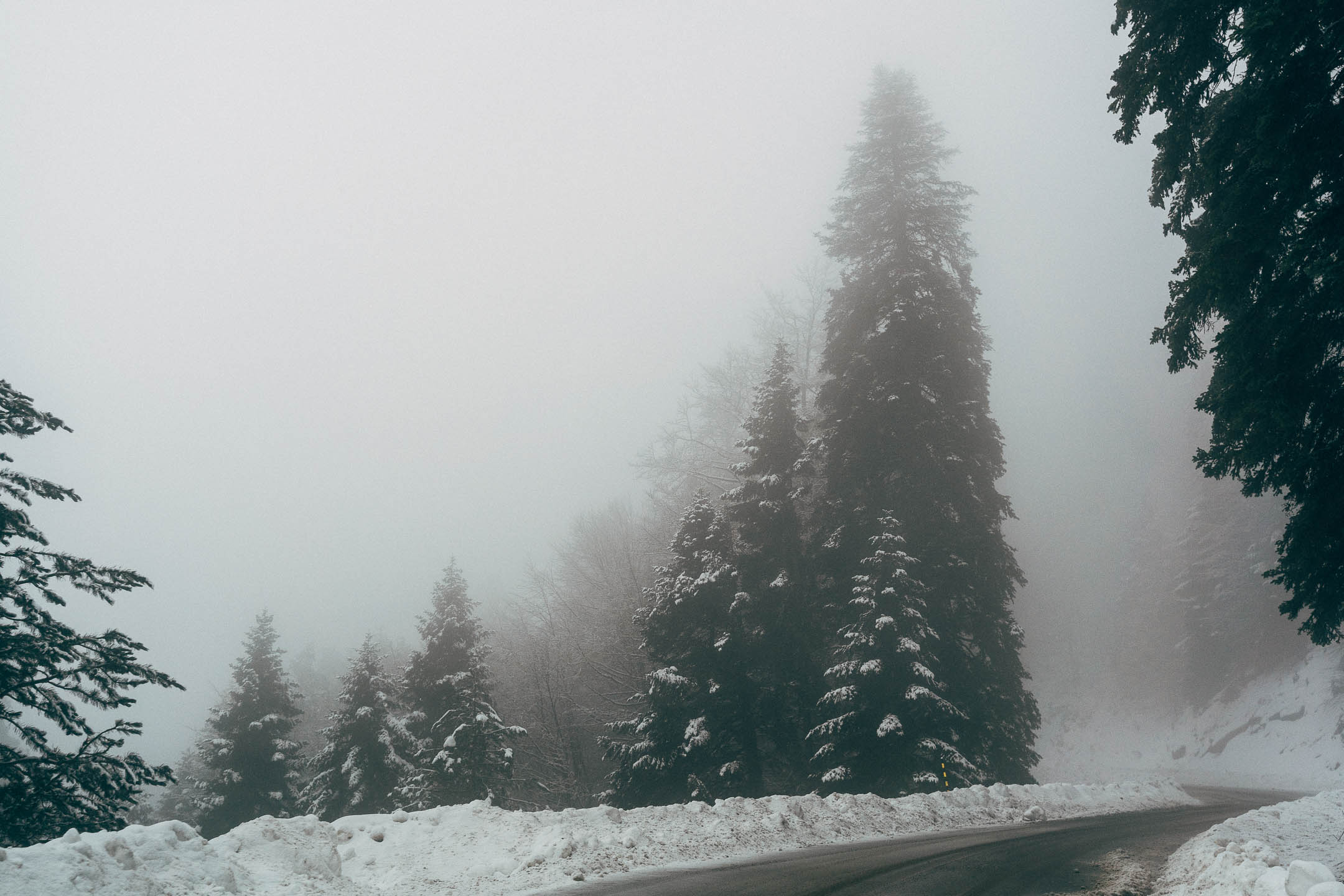 The road is clear and safe, but there’s a lot of snow around us, making the scenery magical. Huge fir trees covered in white, as if wearing their best clothes to welcome us. We reach the ski resort, and the experience begins.