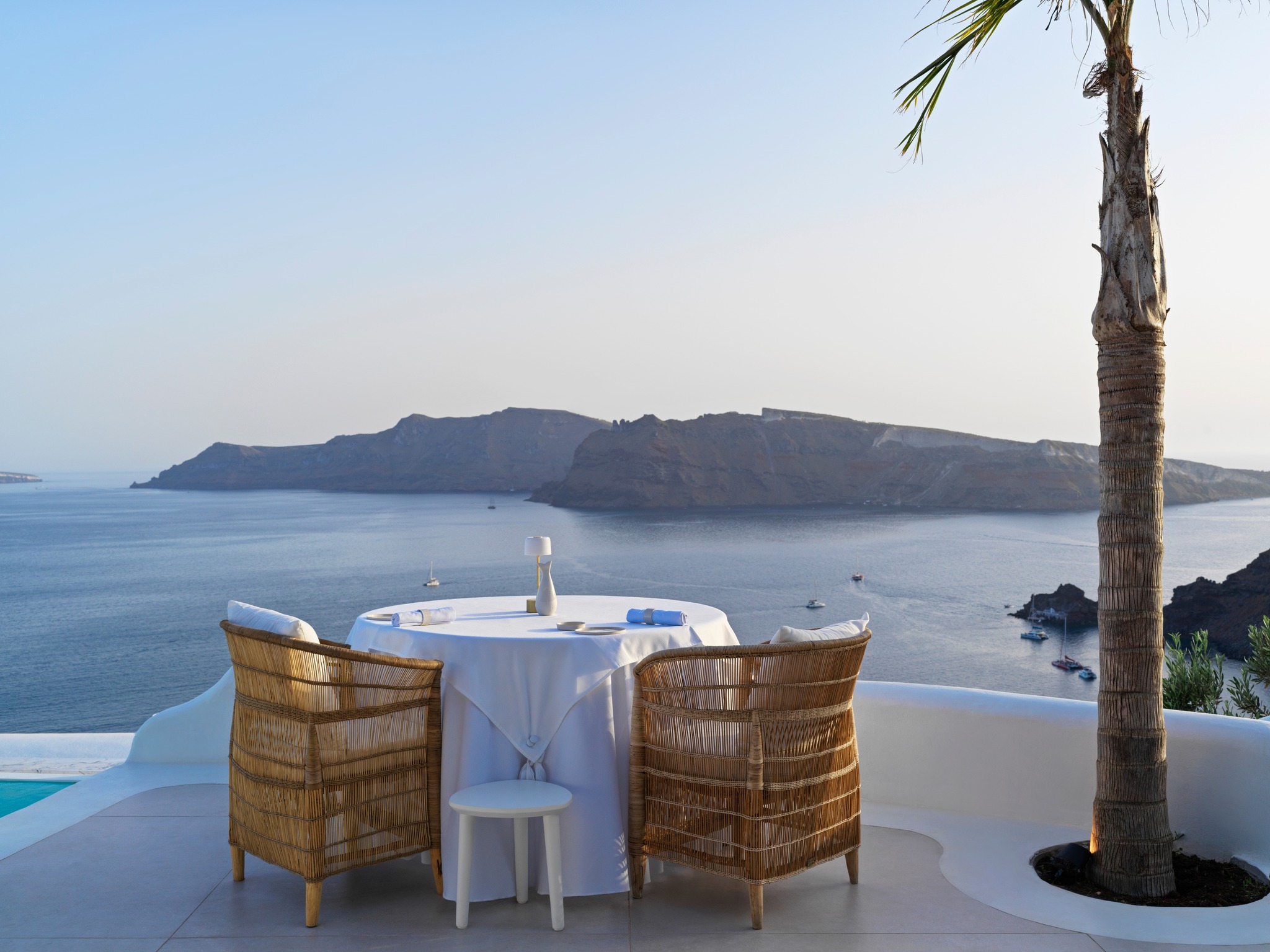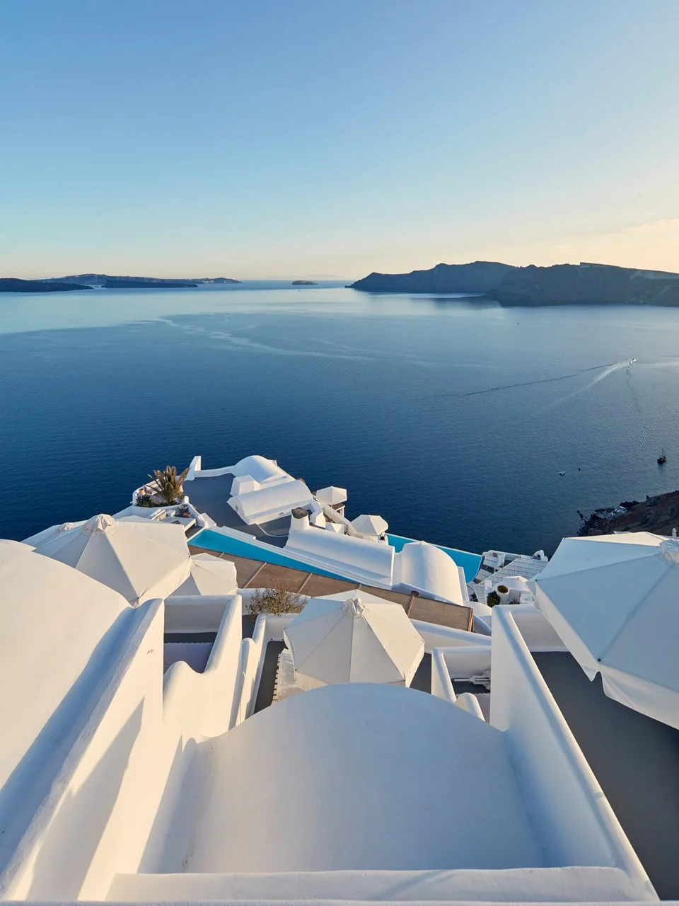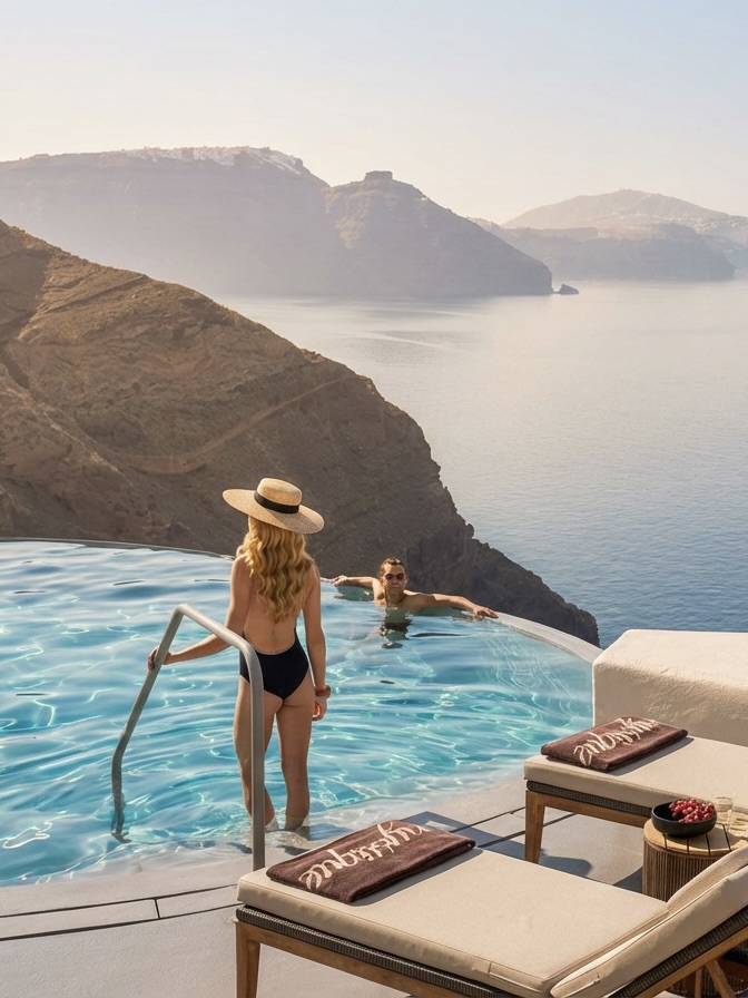 Stay: Katikies for luxurious cliffside suites; Mystique for intimate, adult-only peace.