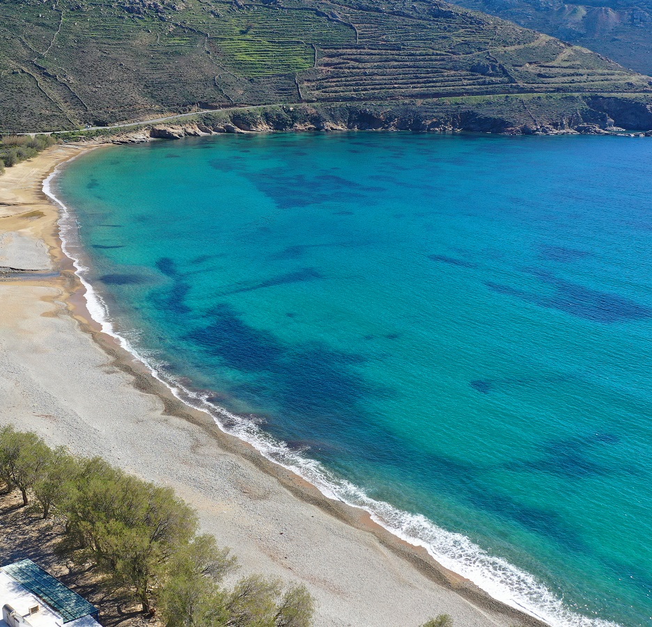 Karavi: Next to Livadakia, this beach artfully blends golden sand with scattered pebbles. A reef that’s perilous to seafarers lies at the mouth of the harbor, its peak stopping just a few centimeters below the sea’s surface. Two shipwrecks nearby offer enjoyable snorkeling adventures.