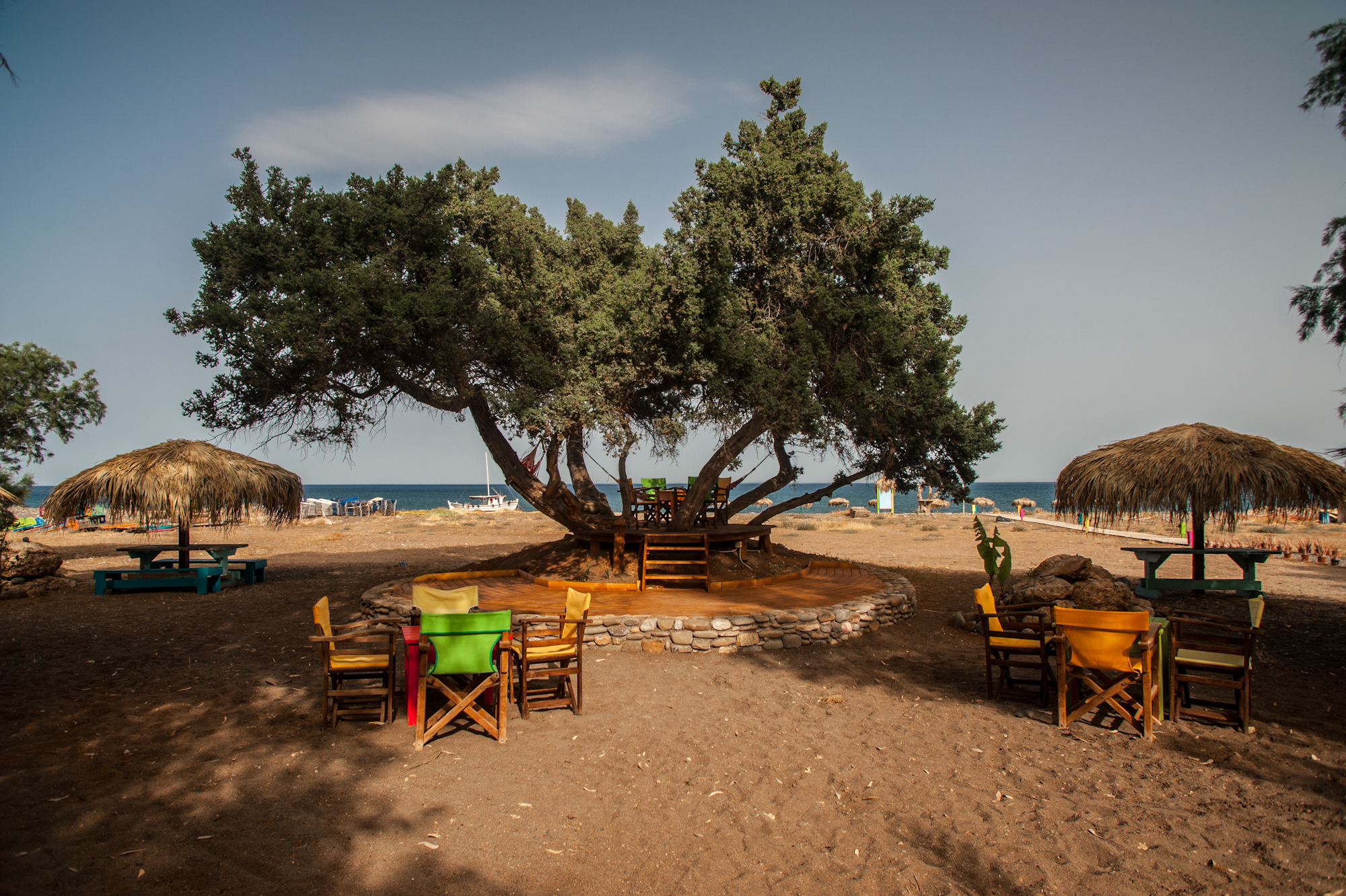 The now famous “Mojito Beach Bar” rightfully deserves the last word, as it was in large part the first to put Lachania on the tourist map. As you approach the endless beach, a fairy tale that includes treehouses, imaginative colourful art creations made of wood and stone, and relaxed, smiling people, appears in front of you, while bossa nova, reggae and salsa tunes provide the perfect score for the setting. It all started in 2007, when Theodora Androutsopoulou, with origins in Rhodes, came here with her husband, Andreas, and their little daughter, Christina, investing in a better life, choosing to stay and work here: “Everything you see here we’ve built with our hands all these years,” Andreas tell us, and adds: “We opened a beach bar creating a pleasant environment like the one we’d like to visit as customers. Anyone who visits South Rhodes will pass at least once from here, while in the 14 years we’ve been in operation we’ve created strong bonds with people from all over the world who keep returning again and again.”