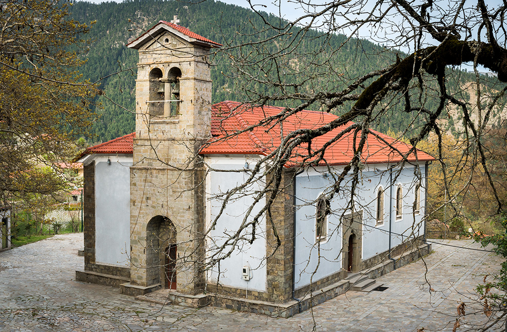 The main attraction of the village itself is the church of the Transfiguration of the Saviour, which dominates its centre. It was built in 1864 by craftsmen from Epirus and reflects their renowned masonry style that developed in the 19th century. Its hagiographies and icons are from somewhat later.