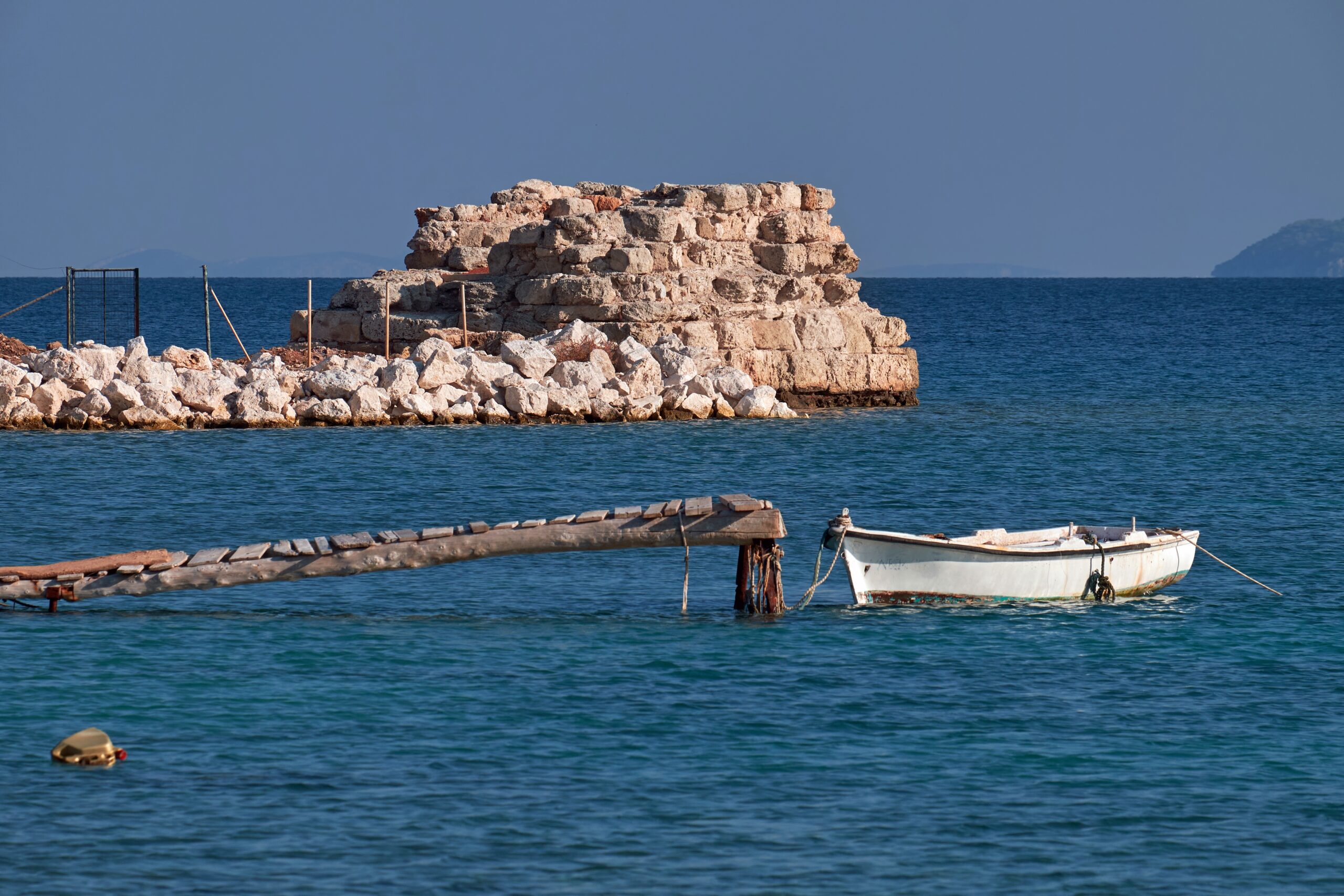 Located in the Corinth prefecture, Kechries, along with Lechaio, once served as one of the two ports of Ancient Corinth. Although the village itself doesn’t possess any particular charm, it is worth stopping by its beach. Here, you’ll find the remains of a port submerged in the sea. It is believed that the first construction works date back to the Archaic period, while the ruins visible today are the result of Roman interventions. The harbor was horseshoe-shaped, with two artificial breakwaters.