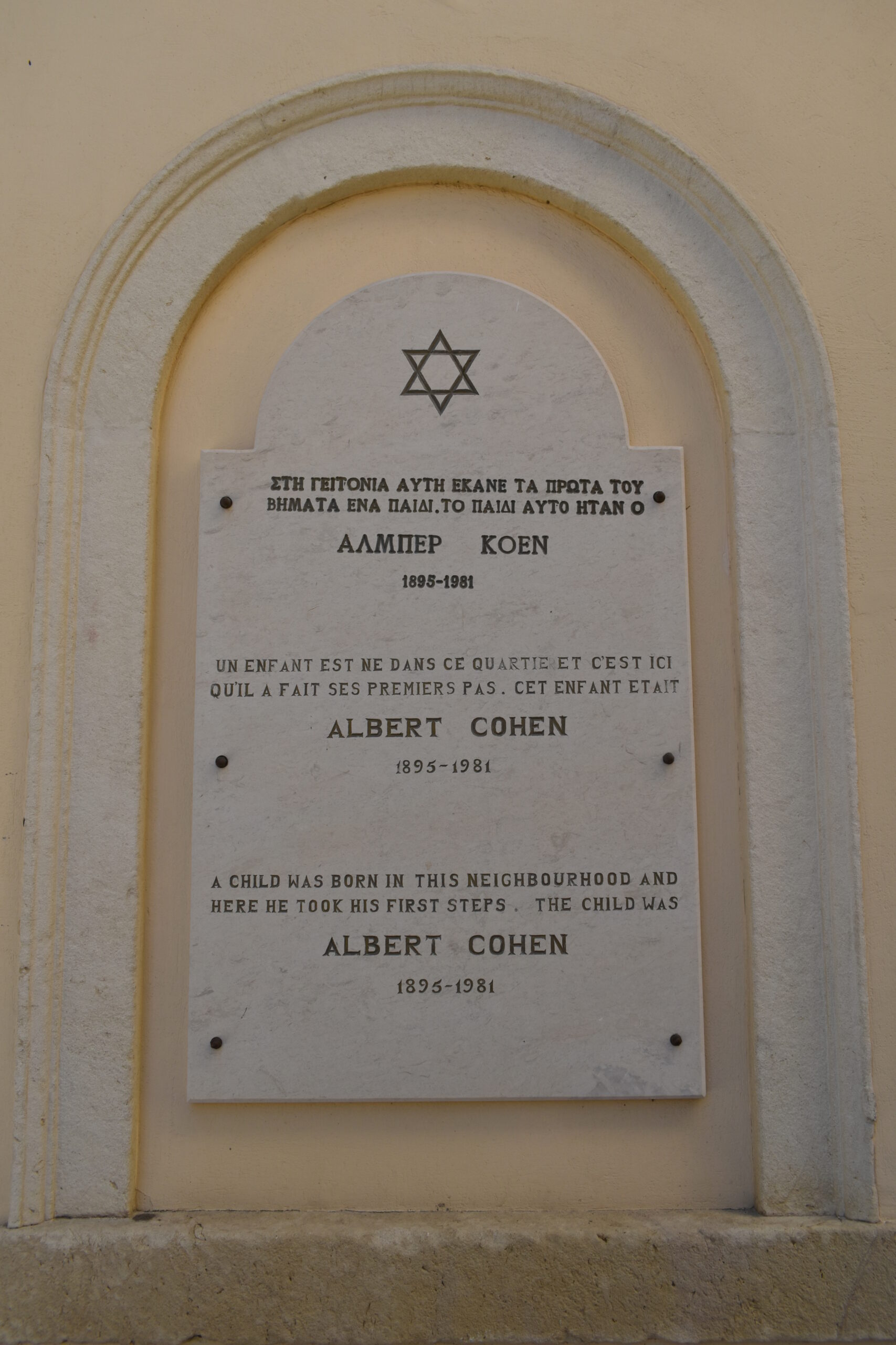 Built on an older building, it is located next to the house where Swiss writer Albert Cohen was born in 1895. He migrated with his family to Marseille in 1900, and despite the social isolation he experienced due to anti-Semitism, he was awarded for his work by the French Academy. Although he only returned to Corfu once, in 1908 for his Bar Mitzvah, a commemorative plaque on the facade of the Synagogue honours his personality and work.