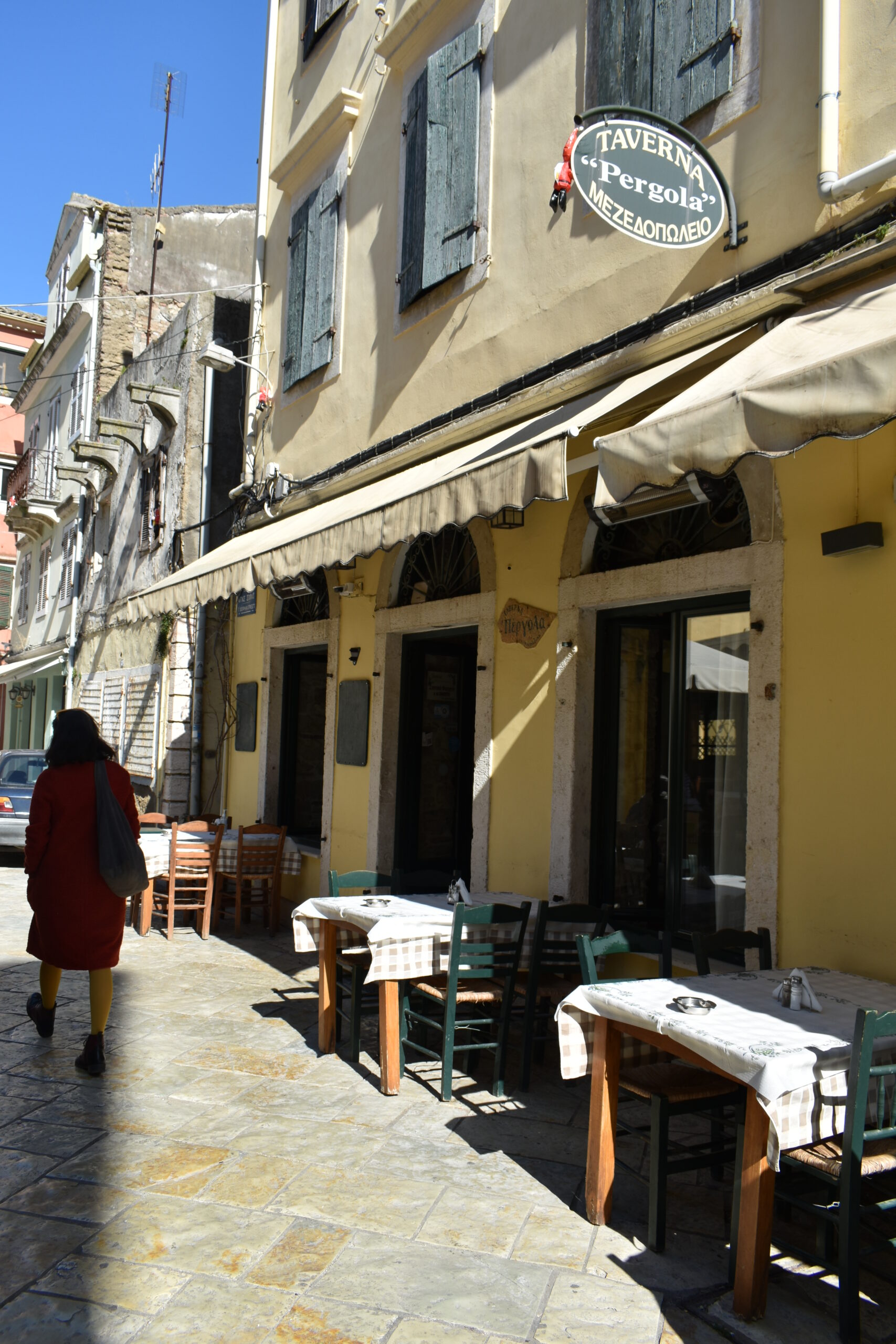 The vaulted interior preserves the old arches; after all, the traditional bakery of the neighbourhood operated here for 101 years, as the black and white photographs near the entrance inform us. Now that the weather is warming up, the outdoor tables have become sought-after, as do the large portions of tasty Corfiot specialities – try the “tsigareli” dish with cooked, spicy greens if you are looking for authentic flavours. Homemade pies, such as the rich leek pie, and delicious appetisers like the aubergine “bourekakia” and cougette balls, are the best start to accompany your ouzo or tsipouro, continuing with the very popular seafood fritters.