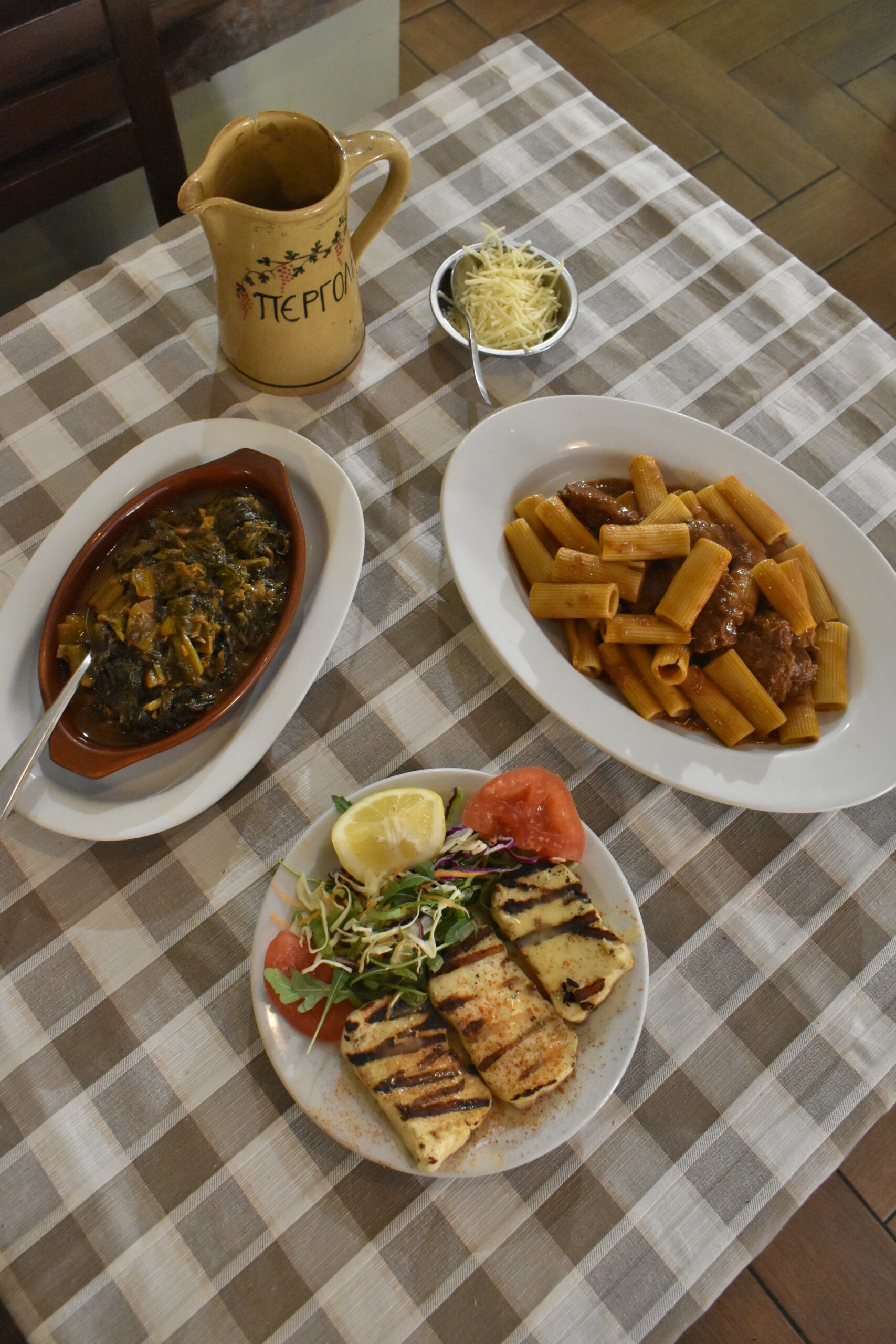 The meat dishes, whether grilled like the hearty stuffed burger or cooked like the stifado and kleftiko, guarantee a scrumptious meal. Enjoy the apple compote in grenadine with cinnamon and star anise as a soothing treat, and before leaving this picturesque street, stop by the adjacent bakery, a continuation of the old one, for fluffy mustokouloura (grape must cookies) and fragrant koulourakia that will make your wanderings in this distinctive area with its evident traces of a turbulent history all the more enjoyable.
