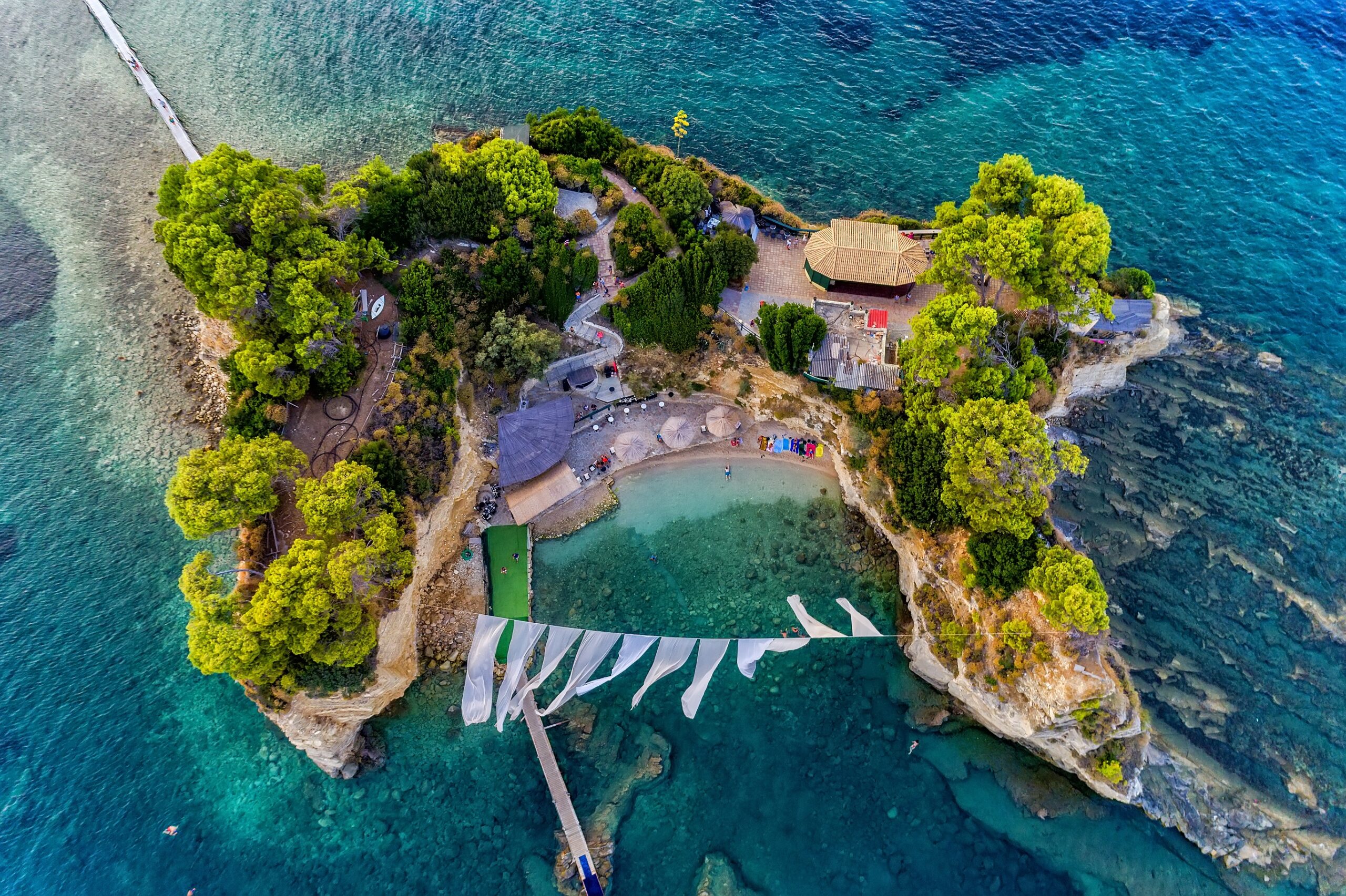 It’s impossible to travel to Zakynthos and not spend at least one day here. Despite being a truly lilliputian island, its extreme natural beauty make it one of the most popular sights of this stunning place. It has lush vegetation, the waters are unreal, and its caves are so stunning you won’t be able to stop taking pictures.