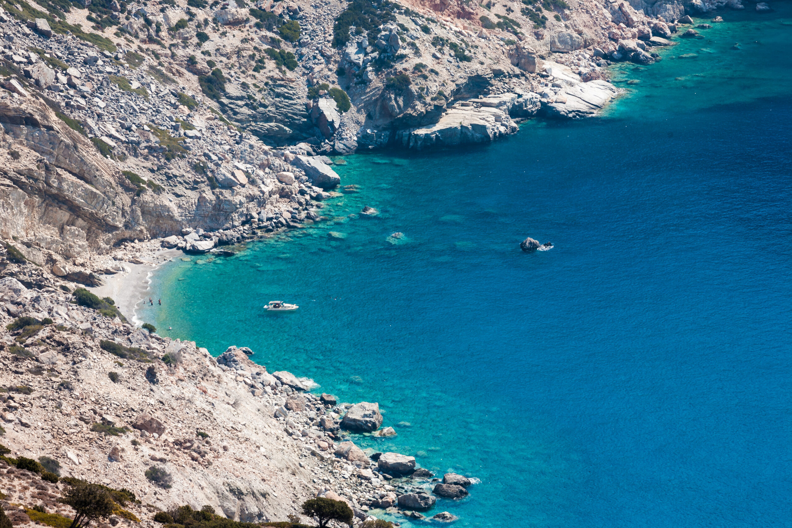 If you like hiking, then you’ll love the route towards the small beach of Tourkopigado. Follow the path that starts from Hora, going through the island’s mountainous part, with a lovely view of the Aegean Sea. The beach is pebbled and has stunning turquoise waters.