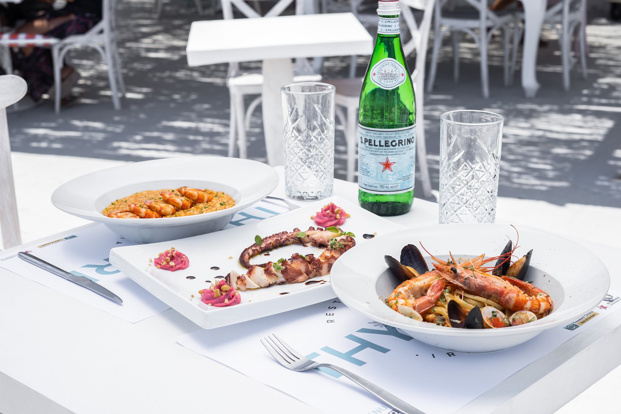 Great breakfast overlooking the sea. Sit on the small veranda with the blue rails and enjoy your coffee and the amazing view. Order omelette with feta, fluffy pancakes with scrambled eggs, penne with Naxos graviera for lunch, fresh sandwiches made with local ingredients, and, in the evening, refreshing cocktails.