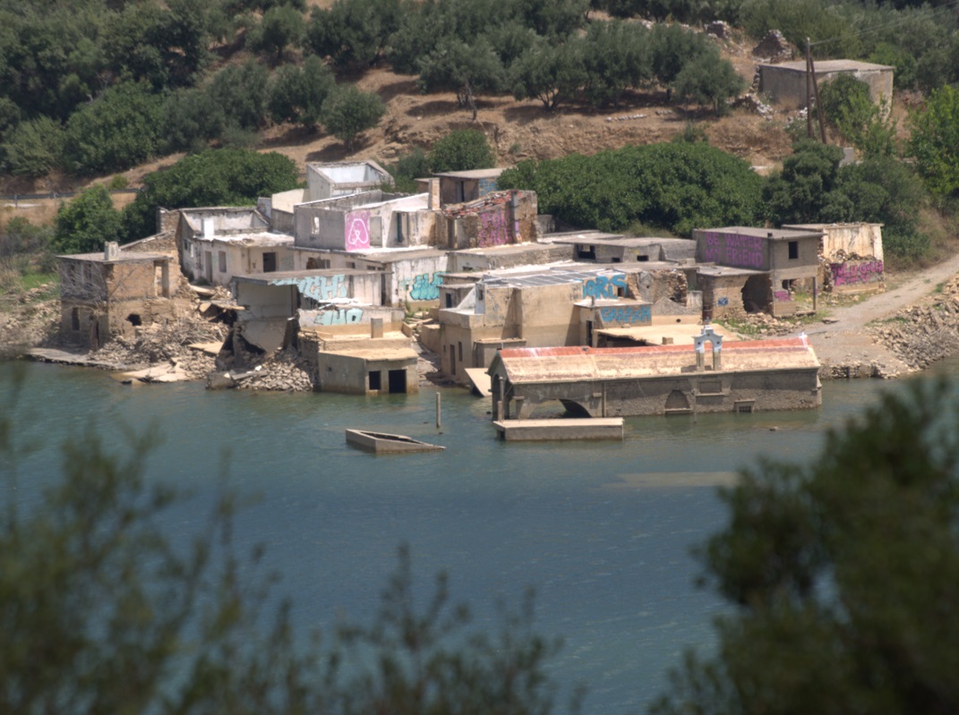 Half-sunken building in the artificial lake at the edge of Empasa gorge. / Photo: Nikos Maounis