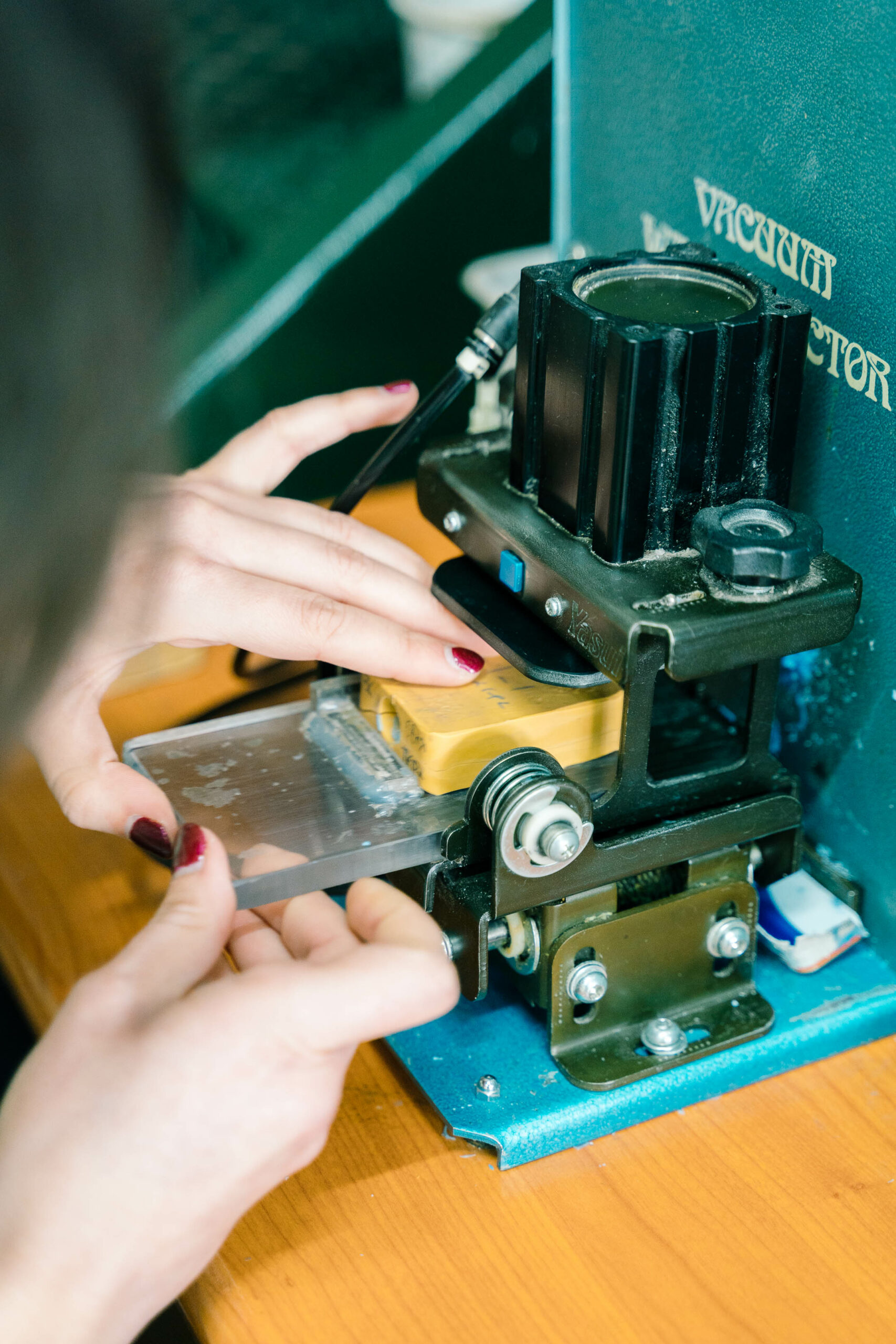 We look at the machinery and tools while we learn about each process in detail. “It’s a line of work that if you support it and take care of it it’s really hard to be out of work,” Lambros tells us, who, together with his colleagues Katerina Gkouma and Efi Nikolatou, creates unique works of art that are sold around the globe.