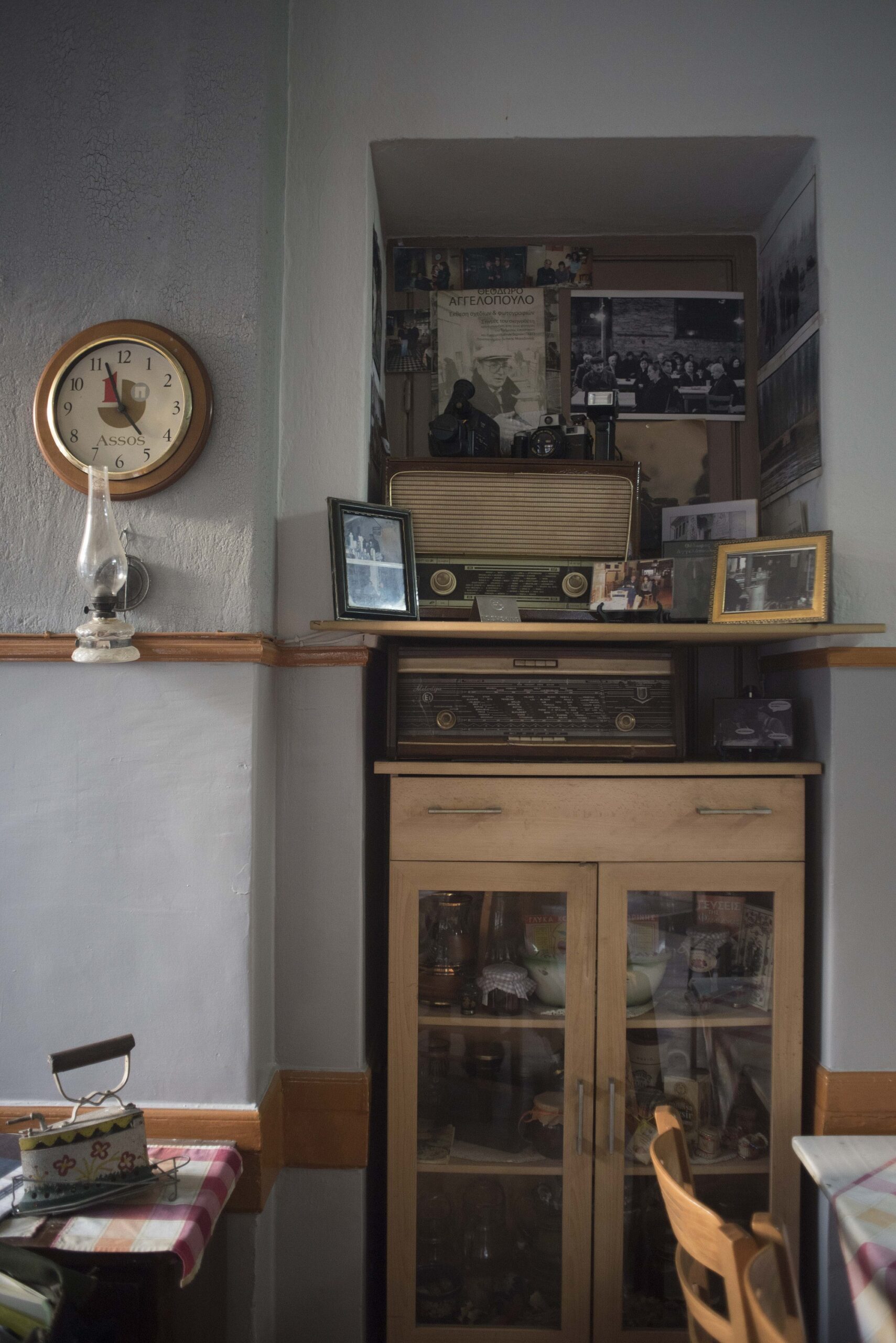 “As years passed Thodoros came on trips with his daughters and always said: “I’ll come back, you know.” And he always did, until he didn’t. We mourned him. I feel grateful for him, both for promoting my shop, and for encouraging my passion for the shop,” Giorgos says. Sounds of plates come from the kitchen. “Thodoros’ wife was friends with my missus, and we remember she would ask for condensed milk. I have a scene in “Eternity and A Day” where I tell Bruno Ganz ‘I don’t think you can get a taxi, the road is terrible’, as I give him a glass of water. It was mid-winter and Florina was covered in white,” Giorgos tells us tirelessly.
