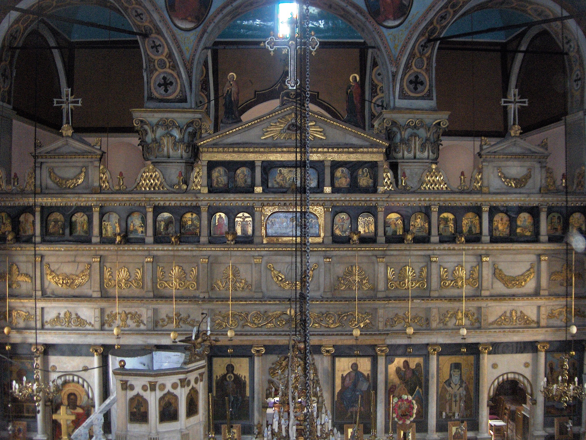 In the centre of the town stands the metropolitan church of St. John the Baptist, built in 1852 by the Italian architect Jacobo Sebastino, on the site of an older church, which had been there since Byzantine times and until 1800 was owned by the Monochartzi family. The icon of John the Baptist is much older. It dates back to 1646 and is the work of the distinguished hagiographer Emmanuel Tzane.