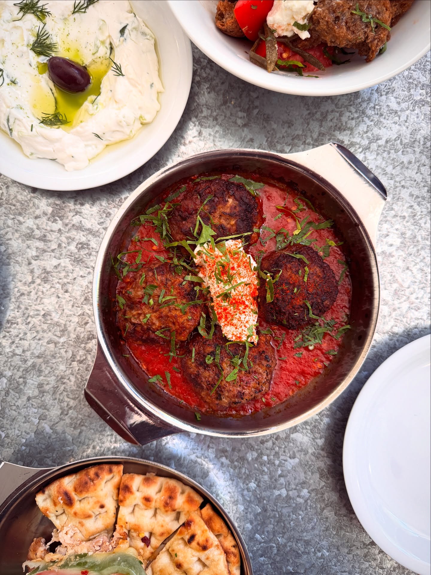 Tucked into upper Kypseli, Atlas opened in late summer 2025 with a focus on thoughtful meze and clean, comforting flavors. The space mixes terrazzo, earthy colors, and a long marble bar, creating an inviting setting that suits both early evenings and unplanned, late-night catch-ups. The menu leans toward seasonal, ingredient-led dishes — tomato salads, fritters, slow-braised meat — paired with a wine list built around small Greek producers. It’s the kind of restaurant that settles naturally into the neighborhood fabric, understated but instantly familiar.