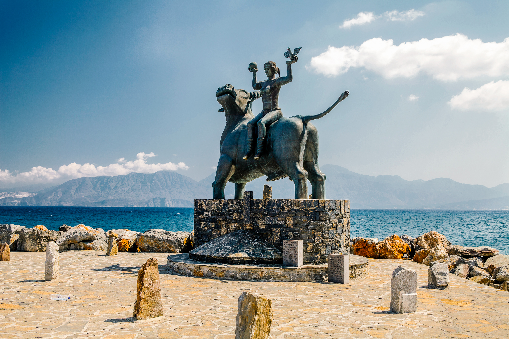 Today, the city’s main economic drivers are olive cultivation and, undoubtedly, tourism, making Agios Nikolaos an attractive destination year-round. Every corner showcases distinctive local architecture, while statues throughout the city each carry special significance. Among these is the famous “Abduction of Europa” on the harbor pier, designed by director Nikos Koundouros and created by Nikos and Pantelis Sotiriadis. Another notable landmark is “The Horn of Amaltheia,” also by the Sotiriadis brothers, displayed in a stone courtyard against the backdrop of magnificent Mirabello Bay and Agion Panton islet. Exploring the city, you’ll inevitably notice the characteristic stairs connecting different areas. These stairs, decorated by the Athens School of Fine Arts and the Lasithi Architects Association, have become a trademark of Agios Nikolaos and part of its identity.