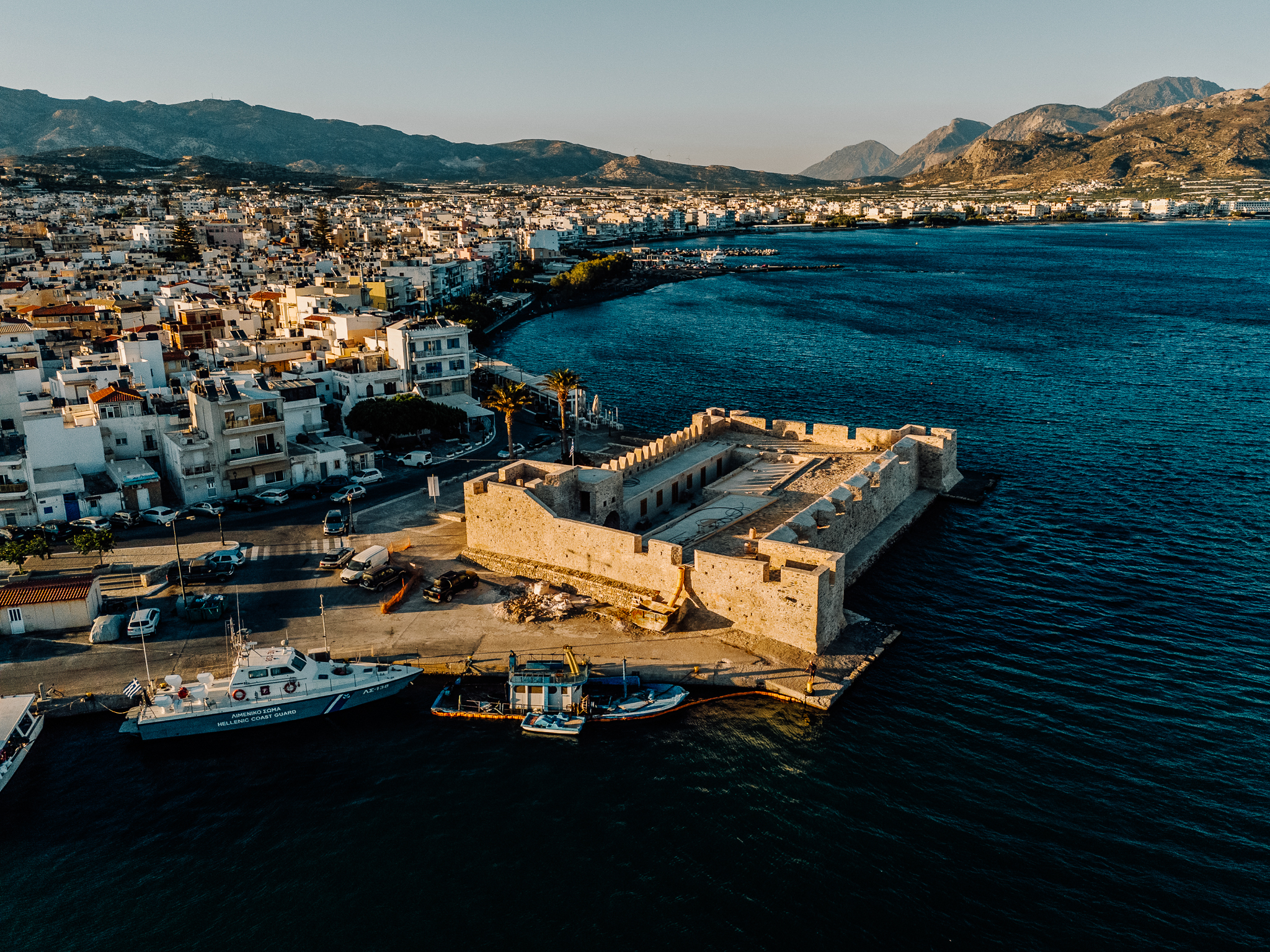 Ierapetra, the southernmost city in Greece, offers a unique mix of history, culture, and modern development. Situated at the narrowest point of Crete, 30 kilometers south of Agios Nikolaos, this city of 12,500 residents has become a key agricultural and tourist hub. Known in antiquity as “Ierapytna,” its strategic location made it an important trade center, peaking during the Roman era. At the entrance to the old harbor, the Venetian fortress Kales stands as a symbol of Ierapetra’s rich history. The Old Town, located in the Kato Mera area, offers visitors a glimpse into the past, with landmarks such as the “House of Napoleon,” the old mosque, and the Ottoman fountain. Today, Ierapetra is renowned for its agricultural exports, particularly vegetables sent to Europe. It has also grown into a vibrant tourist destination, with a range of accommodations and entertainment options, especially along its bustling coastal road.
