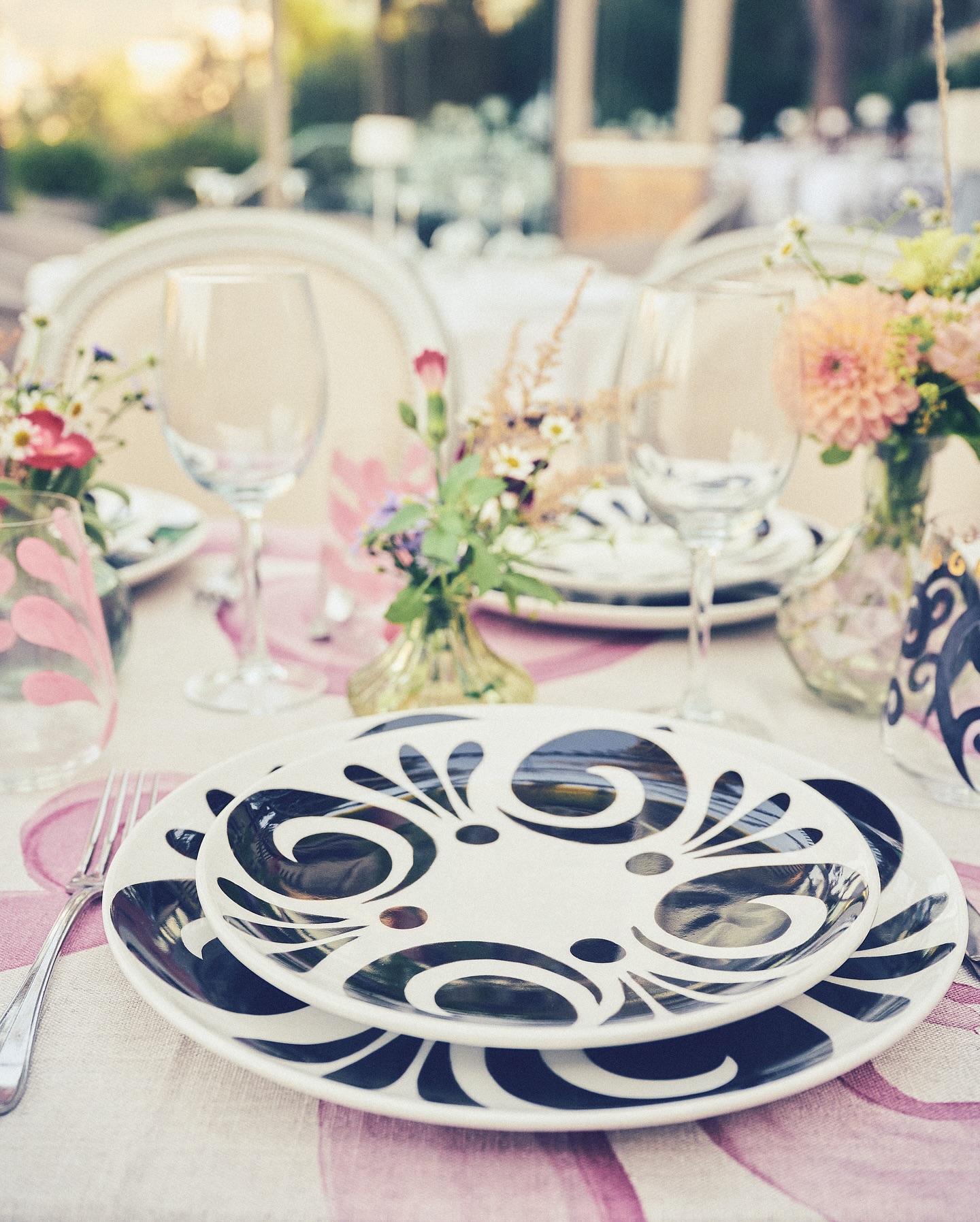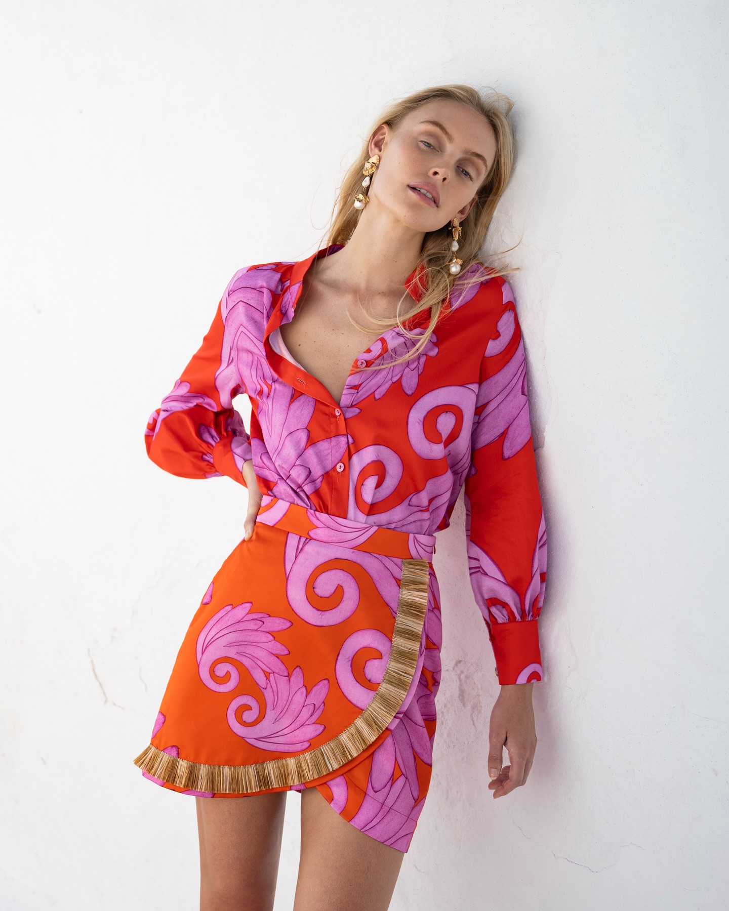 The brand moves fluidly between fashion, interiors, jewelry and collectible design, with clothing collections forming part of a wider visual system rather than standing alone. Resortwear plays a central role, expressed through silk dresses, kaftans, and printed separates designed for warm climates and seasonal travel. Beyond clothing, the work has extended into tableware and home objects through high-profile collaborations, including projects developed with Dior Maison and earlier porcelain collections created for destinations such as Skorpios. This cross-disciplinary approach positions the label as a design house rather than a conventional fashion brand.