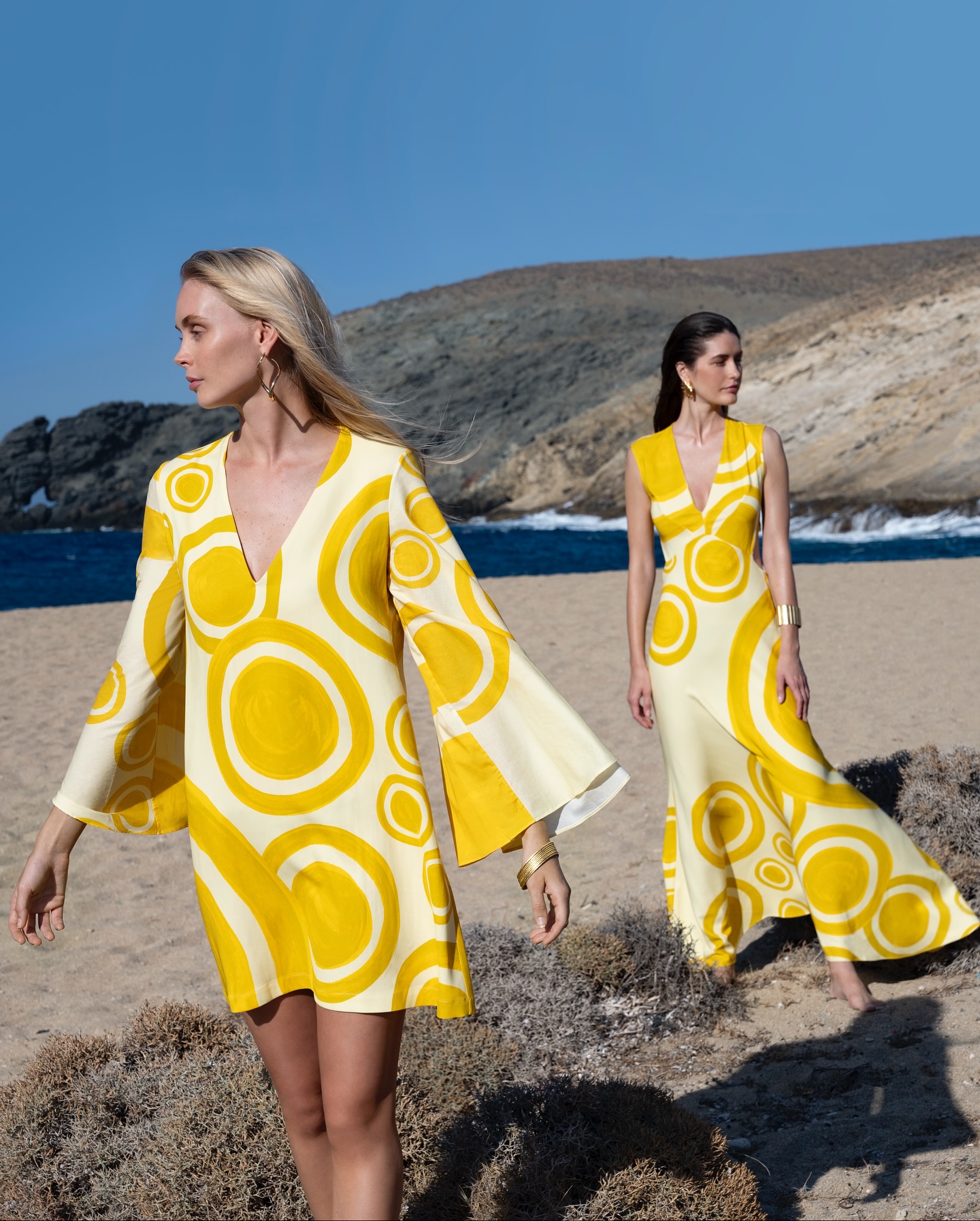 Resortwear here emphasizes handwork and artisanal techniques. Dresses and statement garments are produced in limited quantities, often incorporating traditional craftsmanship. Materials focus on natural fabrics, and silhouettes allow for movement and heat. The brand sells through its website and selected international and Greek retailers.
