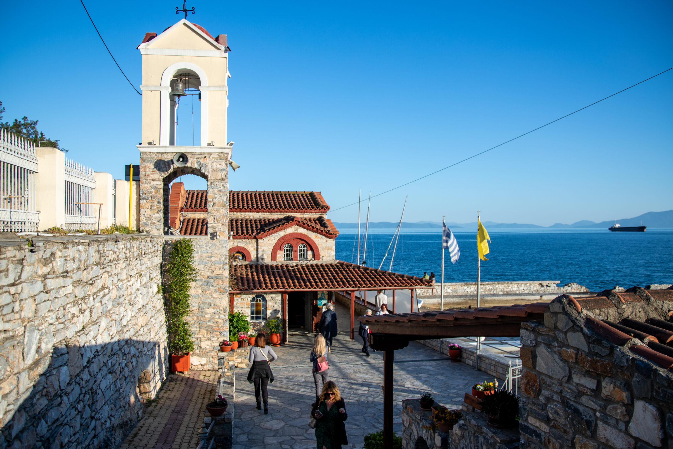 Inside the museum, apart from the tombstones, there are many interesting findings from Sesklo on display. Clay spoons, pots, strainers, olive pits, emmer wheat and all the daily necessities of the locals 9000 years ago. At the east of town, stands the green Goritsa hill, 200 m tall, with a panoramic view of Volos and the Pagasetic Gulf. At its foothills, near the beach of Anavros, there are two very unusual churches. One of them is the tiny Panagia Tripa church (1892) dedicated to Holy Mary. It’s built inside a cave and a small river runs through the church. The feeling that the sound of the water creates, mixing with the chanting is incredible, while the altar is not separated from the aisles allowing the flock to be in direct contact with what is happening in the altar.