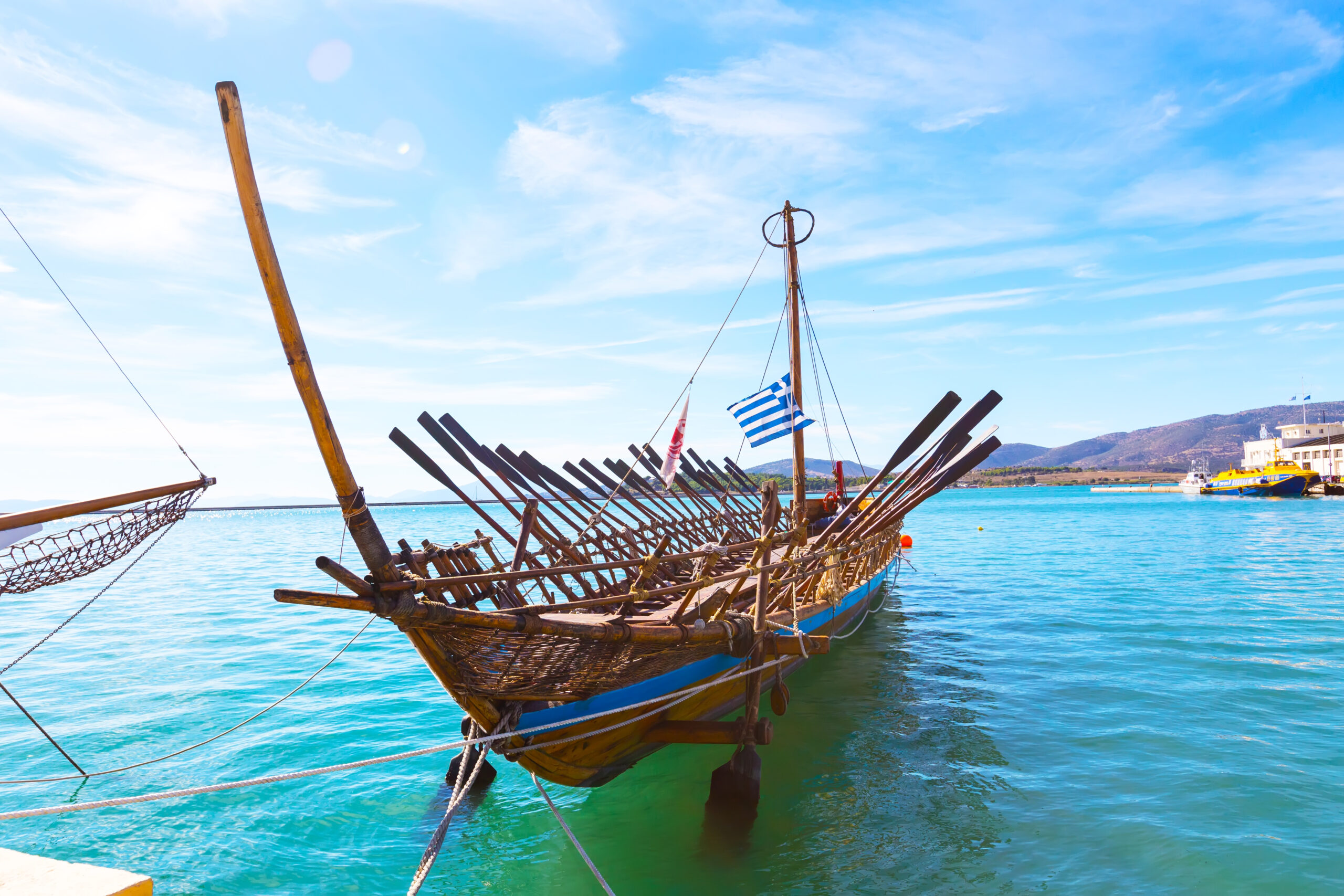 It’s impressive and touching to see a replica of Argo in the port. A replica of the 15th century BC penteconter ship, 28.5 m long and 4 m wide, built with lumber from Pelion, using tools and techniques of the time. With the folded linen sails, it looks like a seagull ready to sail in the sky’s sea.