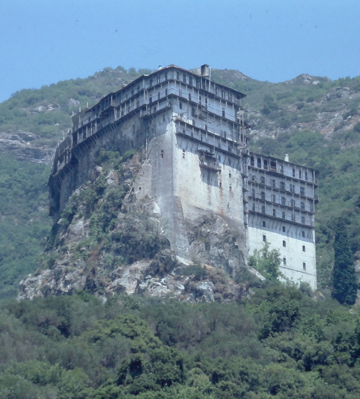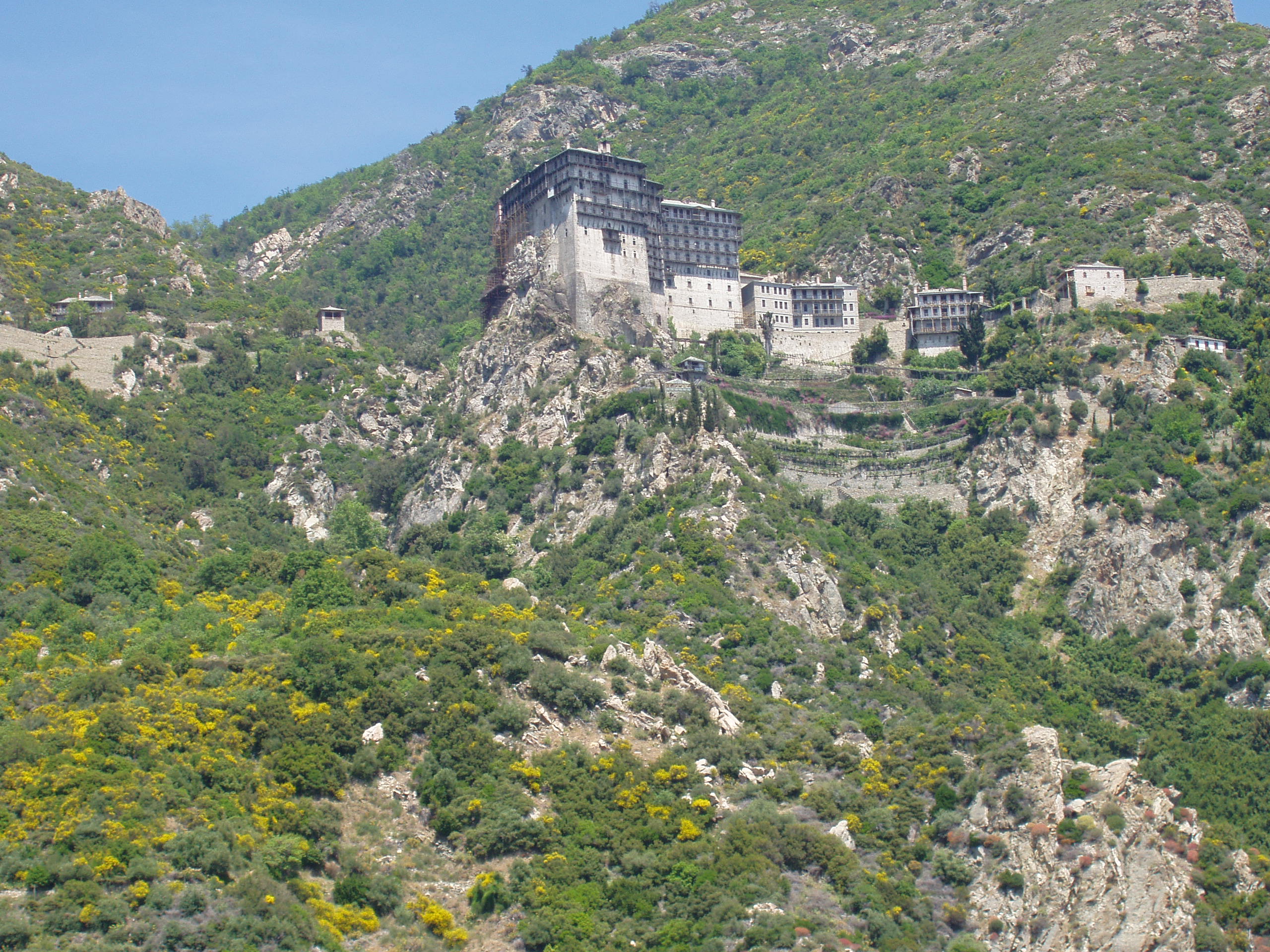 The next part of our trip was on boat, to the nicest, most impressive and best organized monastery on Mount Athos, that of Simonos Petra. It is housed in an impressive structure, 300m above sea level, while five of the seven floors are basically hanging over the cliff. There are monks seated on the balconies, meditating or speaking with each other, adding a mysterious touch to the monastery.