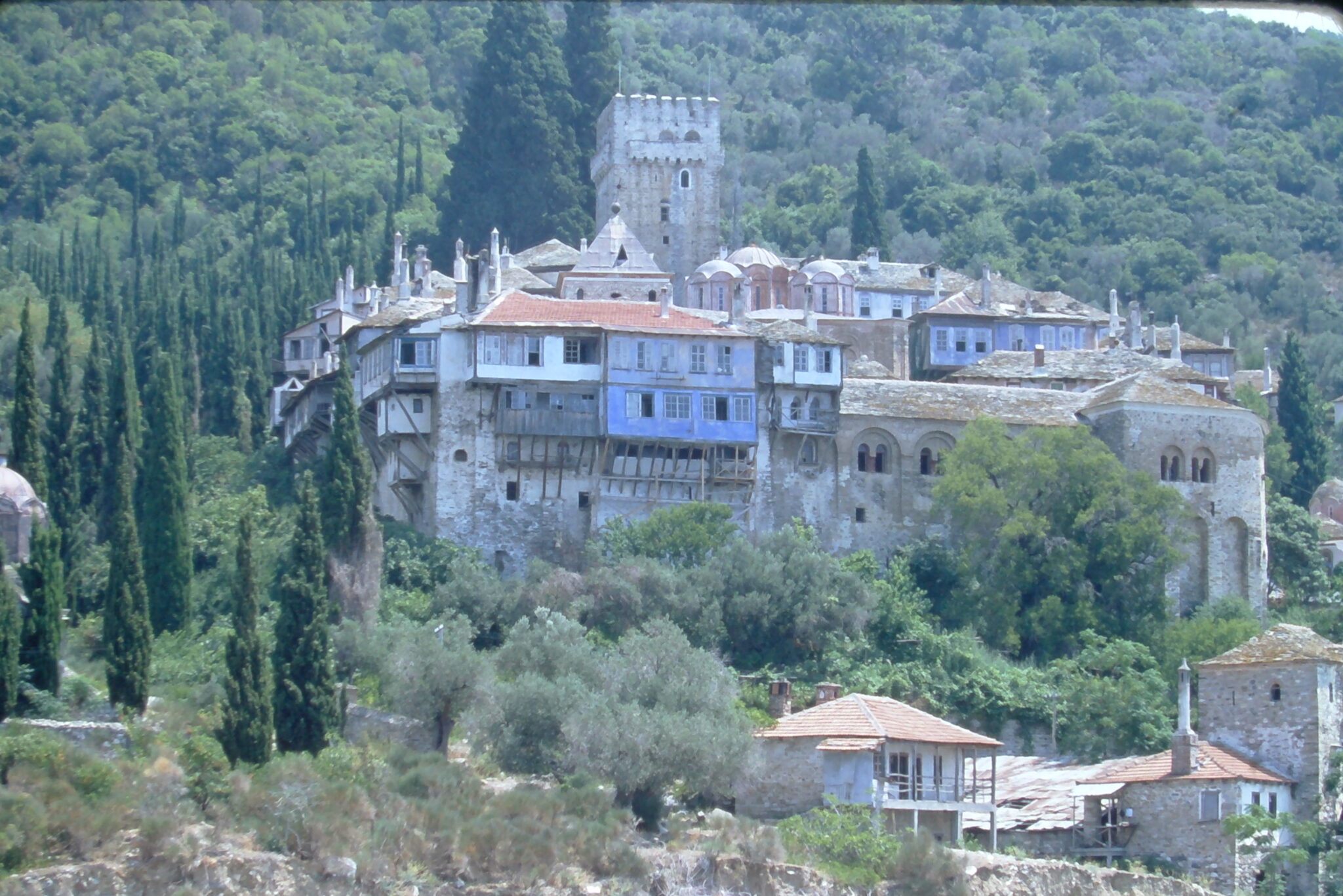 The moment you disembark and see the boat leave the pier; you feel cut off from secular life. There are different laws here, different habits, different rules, ascetic, even sacred. Our first stop with the bus is Karies and it momentarily feels like going back to familiar settings, since Mount Athos’ administration is based here, as is the police, the telecommunications company, the post office, restaurants, hotels, grocery stores, shops selling rosaries, bookshops, a tailor’s shop, a painter’s workshop and a few, historic now, monk cells. The oldest church in Mount Athos, the Protato, is located in Karies, home to the celebrated paintings of Emanouil Panselinos. This is the church where the miraculous icons of “Axion Esti” and “Antifonitos” are kept. We bought all the necessary provisions here, mostly food, as we knew that following the monastery schedule is not always easy.