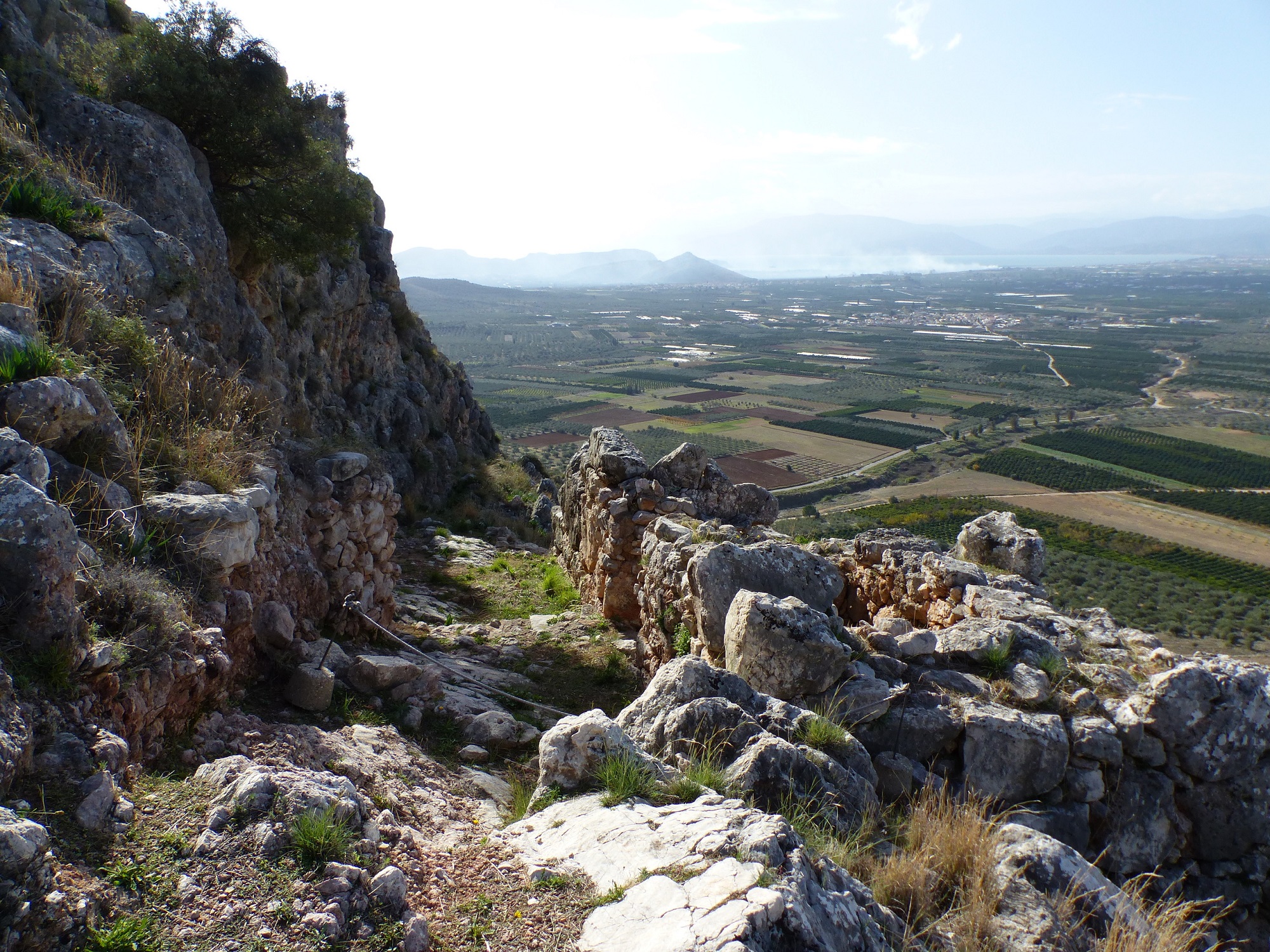 Before you explore the sights in the area, stand for a moment to admire the lovely, unobstructed view. In the distance you’ll see Palamidi, on the left you’ll see Larisa, Argos, and the Argolic Gulf. In front of you, there’s a clearing that fades into the horizon. Of course, when the Mycenaeans were building the walls they wouldn’t be seeing – like you do now – the cars on the new Athens-Tripoli national road. They would however see anyone approaching on land or by sea to attack them, so they had time to prepare their defence, in their impregnable castle.