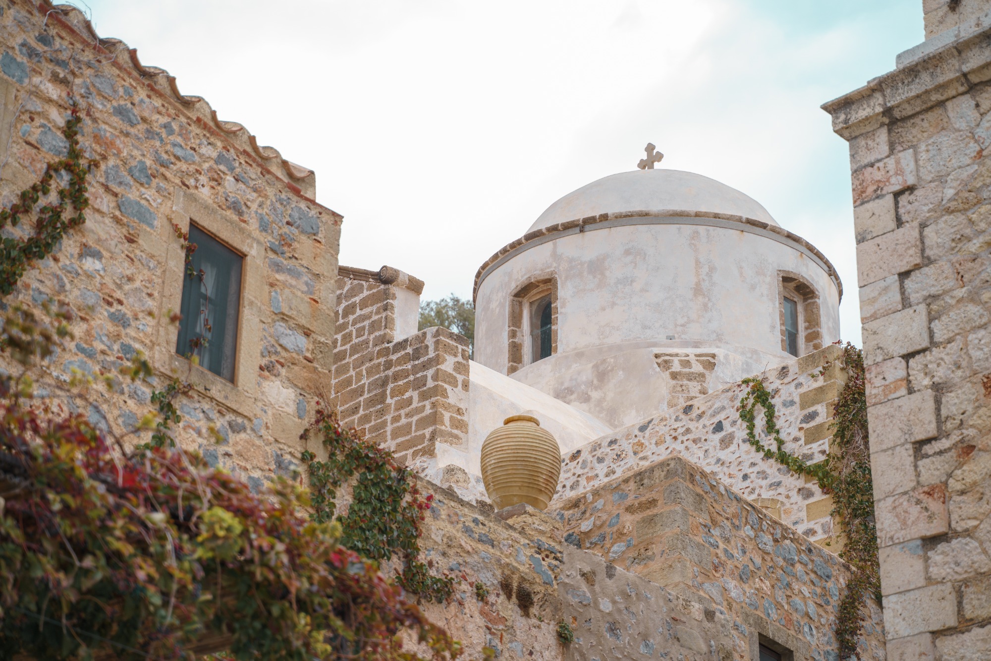 Passing through the medieval tower town’s entrance is like going back in time. The settlement was established in the 6th century BC by the Lacedaemonians and went through various stages. In 1821, when the Greek Revolution began, Monemvasia was the first fortified town to be liberated. It is divided into two sections, each at different levels with separate fortification. Pano Poli, the upper town, nowadays uninhabited, hosts remnants of buildings, both Byzantine and post-Byzantine. It includes Agia Sofia, an octagonal church with a dome. On the contrary, Kato Poli, the lower city, continues to be inhabited and hosts significant monuments such as Elkomenos Christos, a triple-aisled vaulted basilica with a dome, as well as a mosque.