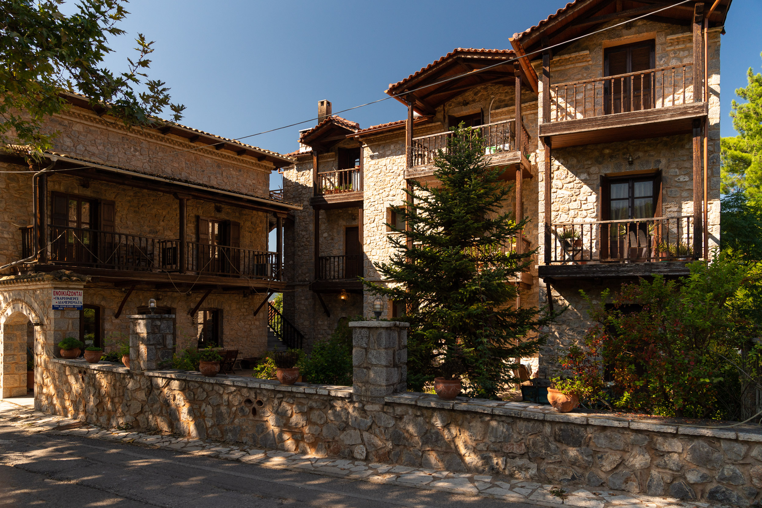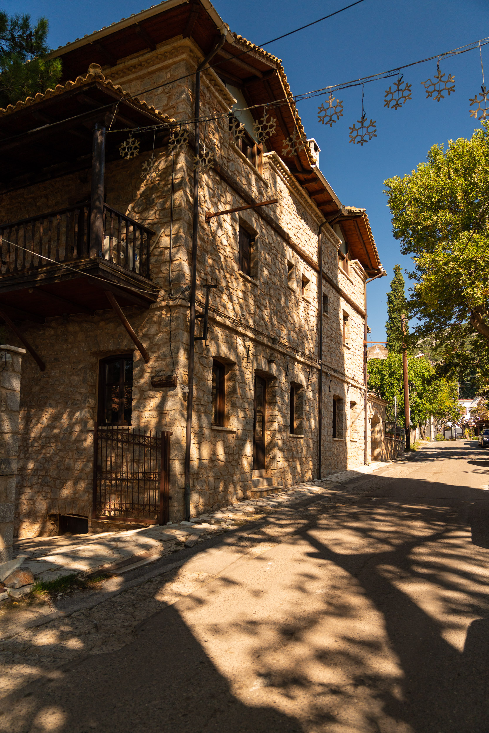 Starting from Kato Trikala at an altitude of 900m go up to Ano Trikala, located at an altitude of 1100m. Made of stone and wood, the houses here follow a more traditional style of architecture, such as the mansion of the famous Notaras once magnate family from Corinth.