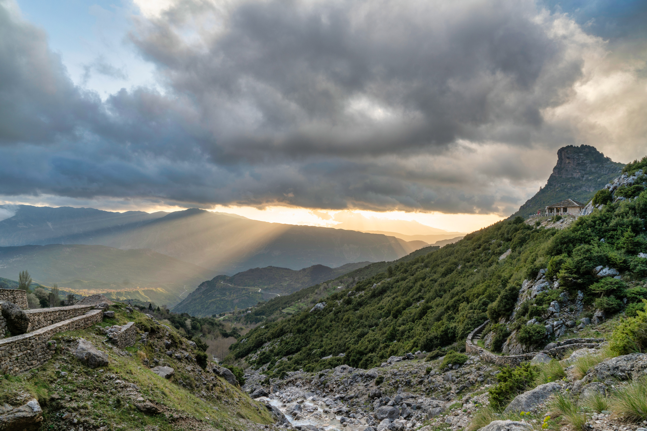 The easiest way to get to the twin waterfalls of Tzoumerka is to reach the village of Kataraktis, coming from Arta. The village is only 7 kilometres away and a nice place to stop for coffee and food, as well as an overnight stay if you decide to spend a few days here.