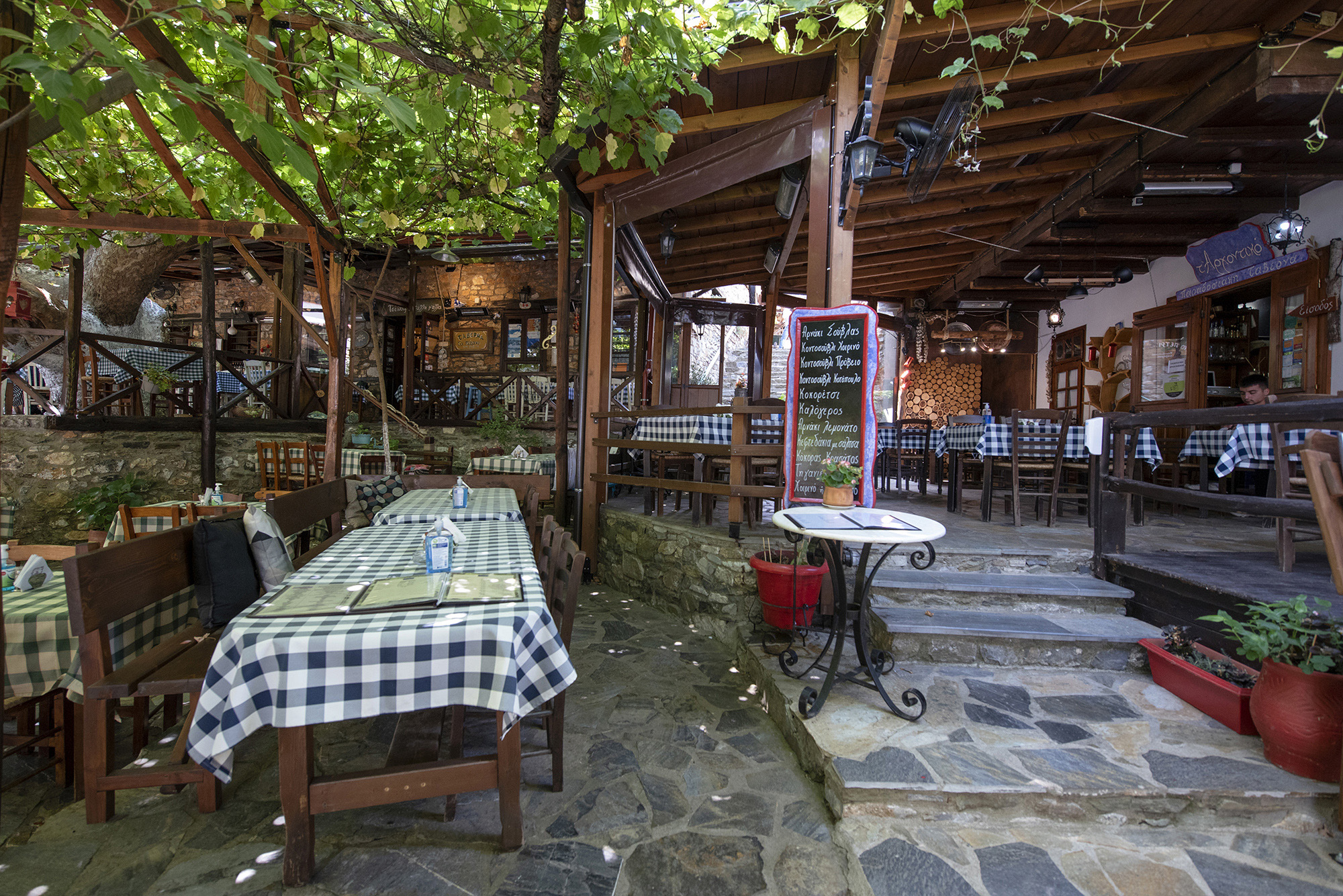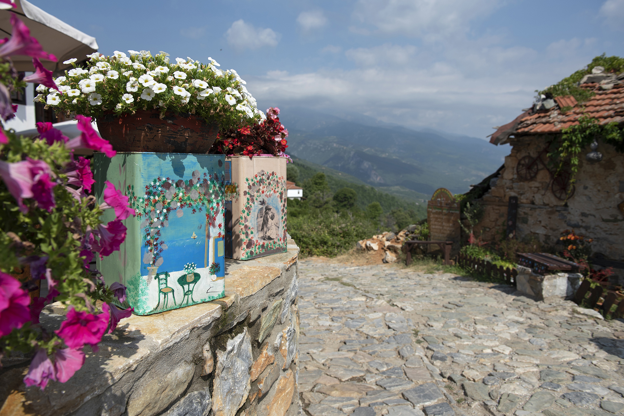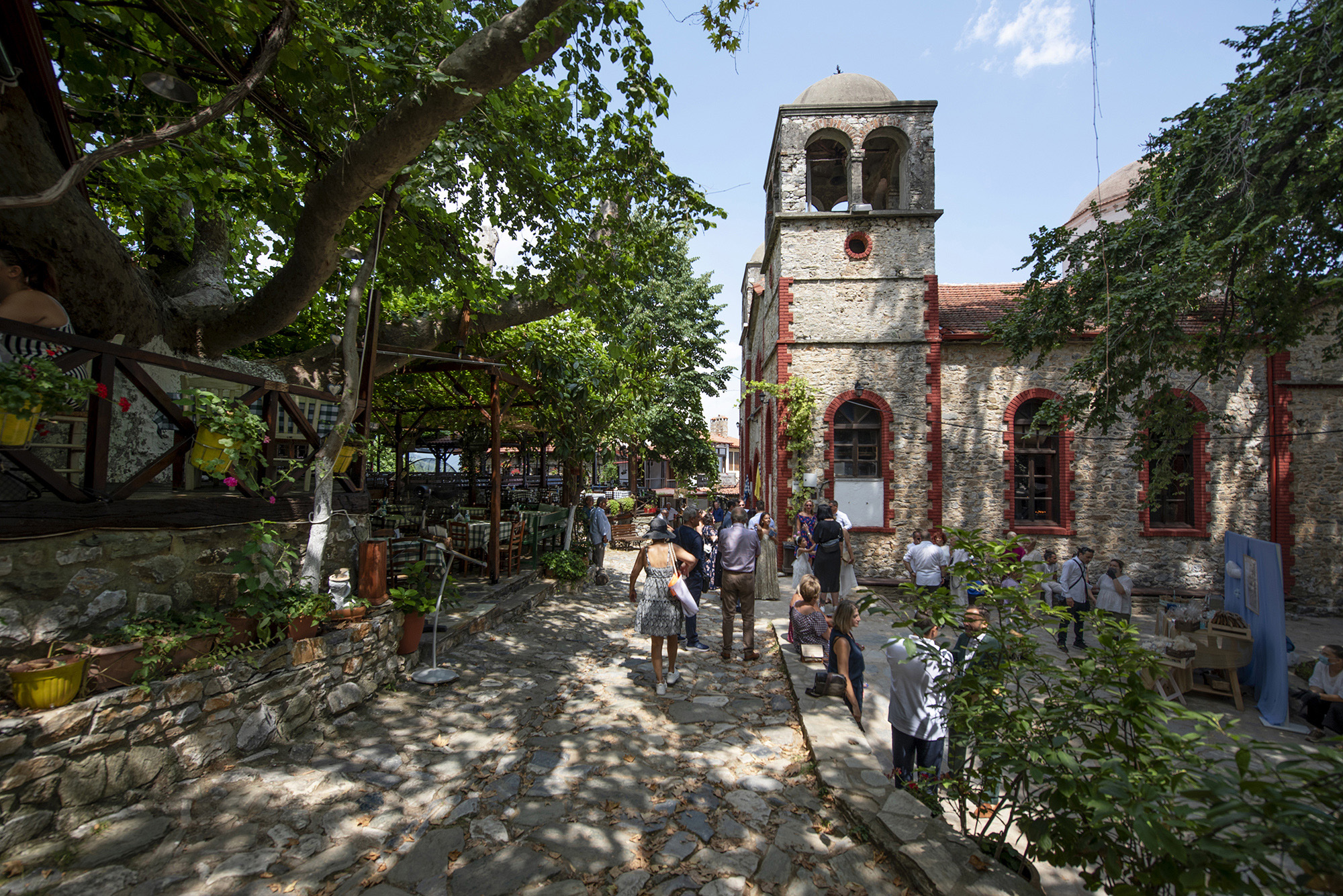 The old traditional village may have been deemed a very suitable set for film productions but locals typically needed to endure harsh winters. Angelopoulos’ decision to choose this deserted village with stone houses and alleys as a location for his “Alexander the Great” film prompted a wider appreciation of the village’s beauty. Several years after the film’s release, an increasing number of people were interested in ascending the winding 4-km road running from the new seaside village to Paleos Panteleimonas. Old dilapidated stone houses were faithfully restored in accordance with specific building guidelines that preserved original architectural styles, along with yards, by the new arrivals.