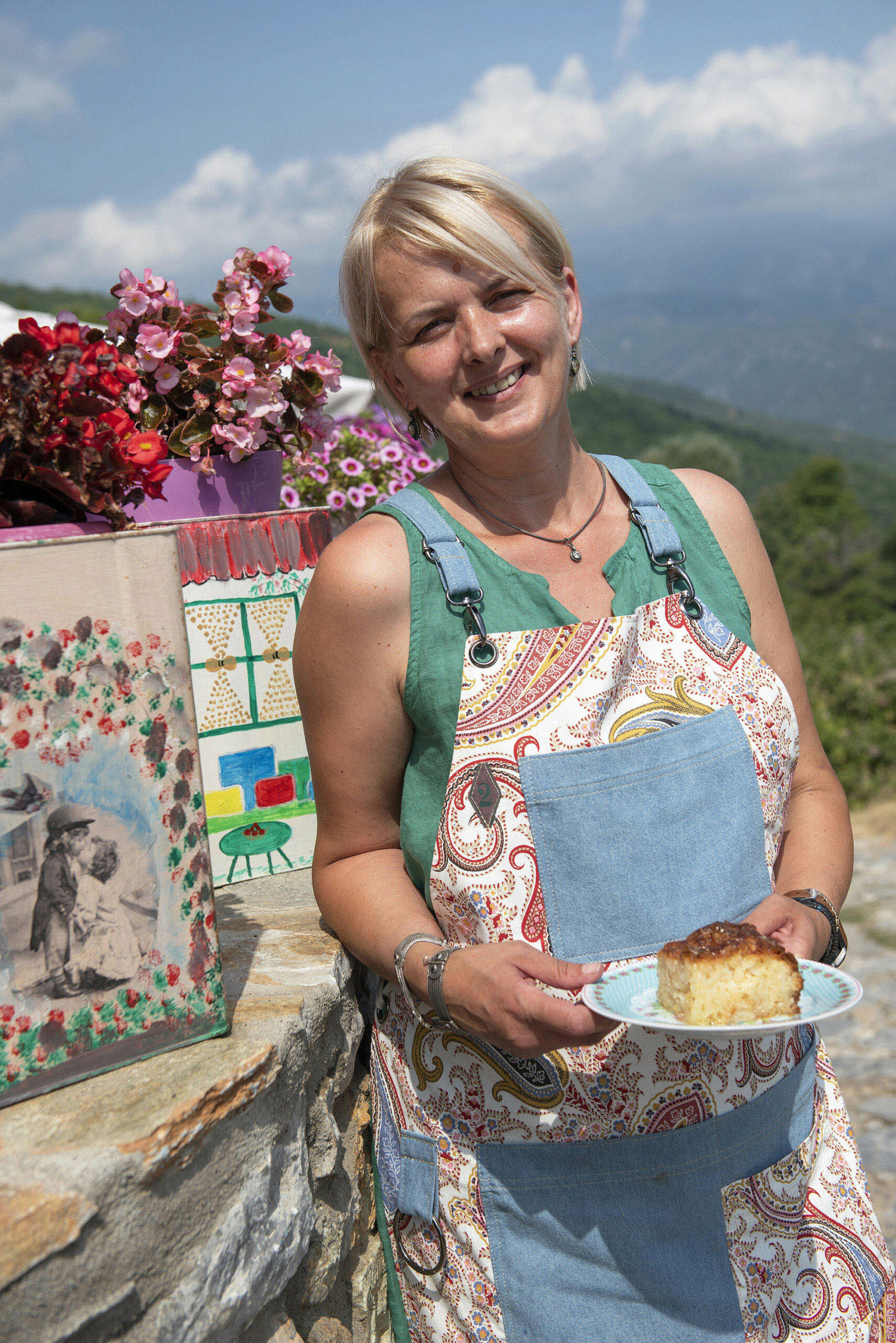 The village’s main cobbled leading to the square features shops selling traditional products. Consider the local honey as well as the tsipouro, made with wild strawberry-like arbutus unedo, producing a fragrant and mild spirit. Before reaching the square, look for the confectionary shop Fofo (Paleos Panteleimonas, Pieria, tel. +30 6977 314661). The little tables here offer a full view of Pieria and the sweets are fresh. Try the ekmek with ice cream; ravani cake; or walnut cake. The square, hosting the church and school buildings, is the village focal point. Tavernas situated under old and tall plane trees serve traditional dishes. We liked the rooster in red wine sauce and the ladera (casserole vegetables cooked in olive oil) at the Olympos taverna (Paleos Panteleimonas, Pieria, tel. +30 23520 22377) as well as the veal with eggplant and chops at T’Arhontiko (Paleos Panteleimonas, Pieria, tel. +30 23520 22603).