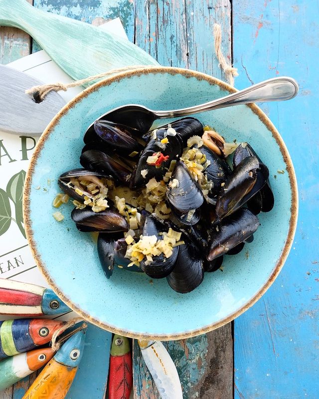 The setting is idyllic—right on the sand with tables under tamarisk trees or in the cool courtyard at Piso Aliki. The cuisine is light, aromatic Greek. Notable dishes include the gopa with beetroot couscous, mackerel in tzatziki gazpacho, and cod mosaic with parsley powder, wild garlic mayonnaise, and samphire. The relaxed vacation atmosphere makes it feel like you’ve gone straight from the sea to the table.