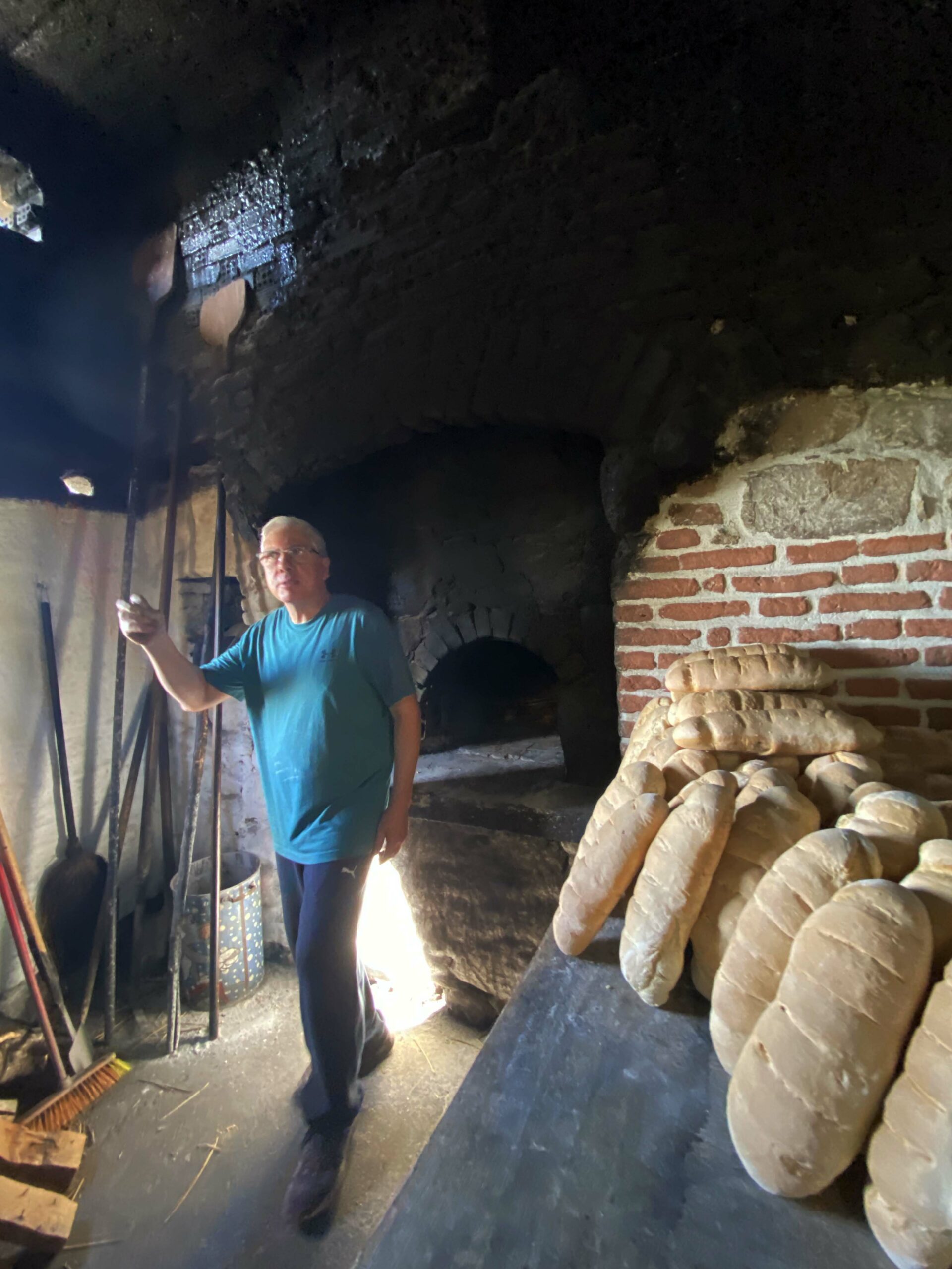 The conversation continues and the bread is slowly running out. The price is written on a piece of cardboard, “2 euros”. I ask him about his daily routine at the bakery. “I wake up quite early. Especially in the summer season, around 4 in the morning. I prepare the dough and then, together with my wife, we put it on the baking board. I fire up the oven and bake. In the summer I can make about 400 loaves of bread. In winter, much less. However, every season has its own beauty. We shouldn’t force things.”