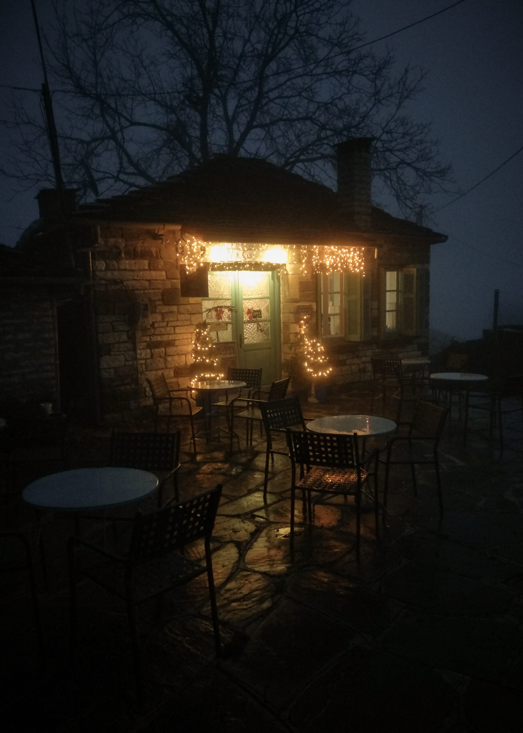 The coffee shop came into my life six years after I left Athens. It’s a personal project aimed at keeping myself at a tolerable level, socially, helping me talk to people, because otherwise, with the human contact I have in the past 10 years, I would just be barking now, like Ursa, the dog I got when I came here. I certainly can’t call the coffee shop a daily routine. I think I am, by far, the worst hospitality sector businessman in the area. Photography is always my main priority and the weather here is always interesting. So, even on the days when I start with intention of opening the coffee shop I see the clouds, the fog, and the gloomy weather that I really like, and instead of taking the path that leads to the coffee shop, I take my photography gear and go up to the mountain for a couple of days. Thankfully, the regulars and my friends understand. Some leave notes “we came but didn’t find you. Have fun shooting.” and things like that. I mainly operate by phone, write it down so people will know. On holidays, three-day weekends, celebrations, and in the summer, when it’s warm, I’m present and you’ll “definitely” find me at “Mezaria”, to cut myself some slack. My coffee shop daily routine, if we can call it that, is simple. I wake up, do any chores around the house that need to be done, cleaning etc, and then I go to the coffee shop. During low season I’m only open on the weekends and, as I said, in the summer and on festive days I try to be more reliable.