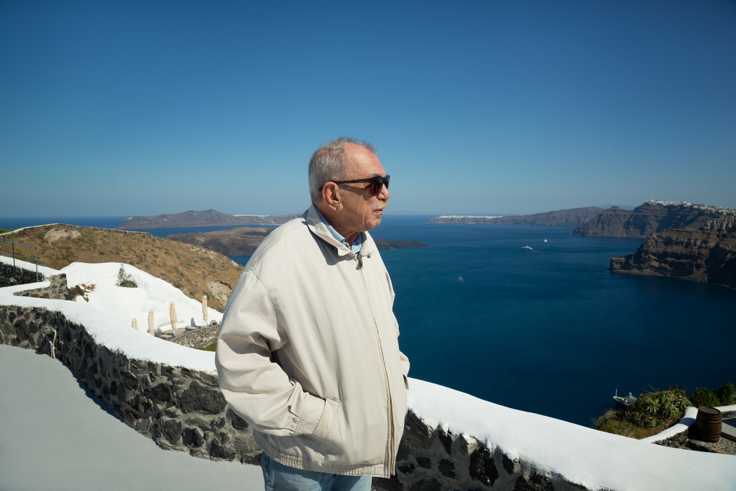 He hadn’t been on the island since last October. At the end of last season, he said goodbye to his Selene – which had already passed into the hands of a new owner and moved to its new home in Fira – and his colleagues, thus closing this chapter of his life after 35 years. George Hatzigiannakis first came to Santorini in the mid-70s, with his spouse Evelyn and a group of architect friends. Enchanted by its energy, he fell passionately in love with the island. After enjoying it repeatedly as an avid traveller, he soon came to see it as the place where he would spend his summers as a restaurateur.