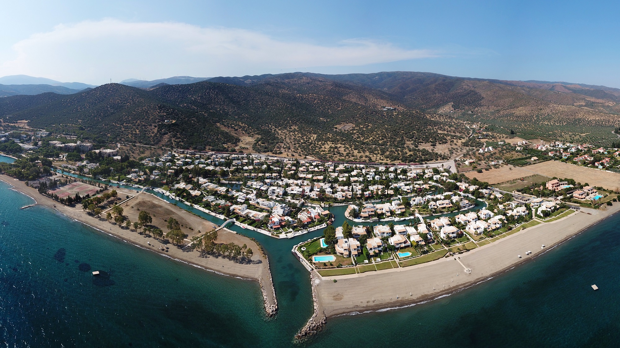 Houses were then built in the entire area and sold to private owners. The project was completed in 2005, resulting in a total of 330 villas, some of which can only be reached by boat. A number of Porto Hydra properties are available for holiday rental.