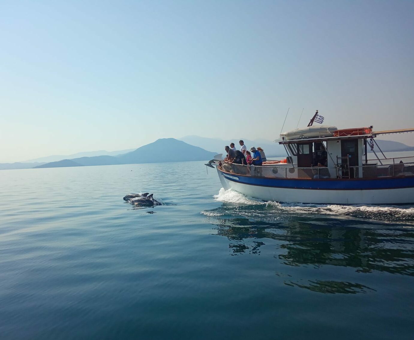 With the help of “Amvrakikos Cruises” it is possible to go both bird and dolphin watching. As the crew jokingly report, the dolphins appear when they hear opera and they often play the tenor Mario Frangoulis. Visitors are encouraged to clap, like the tourists who clap at the Oia sunsets, because the dolphins in contrast to the sunset can feel the encouragement. The Amvrakikos Gulf is a 400 mile² ecosystem with special features that make it a significant natural habitat. The shallow gulf closes in the summer and fish migrate to reproduce in the bay. The semi-brackish waters are beneficial for plankton, which in turn is beneficial to the fish who feed on them. The fish start arriving in June, but there are also permanent populations of sardines, shrimp, sea bream and red mullets. The area’s dolphins, mostly feeding on sardines, belong to the Tursius truncatus species, and their well-being is the best indicator for the state of the Amvrakikos ecosystem.