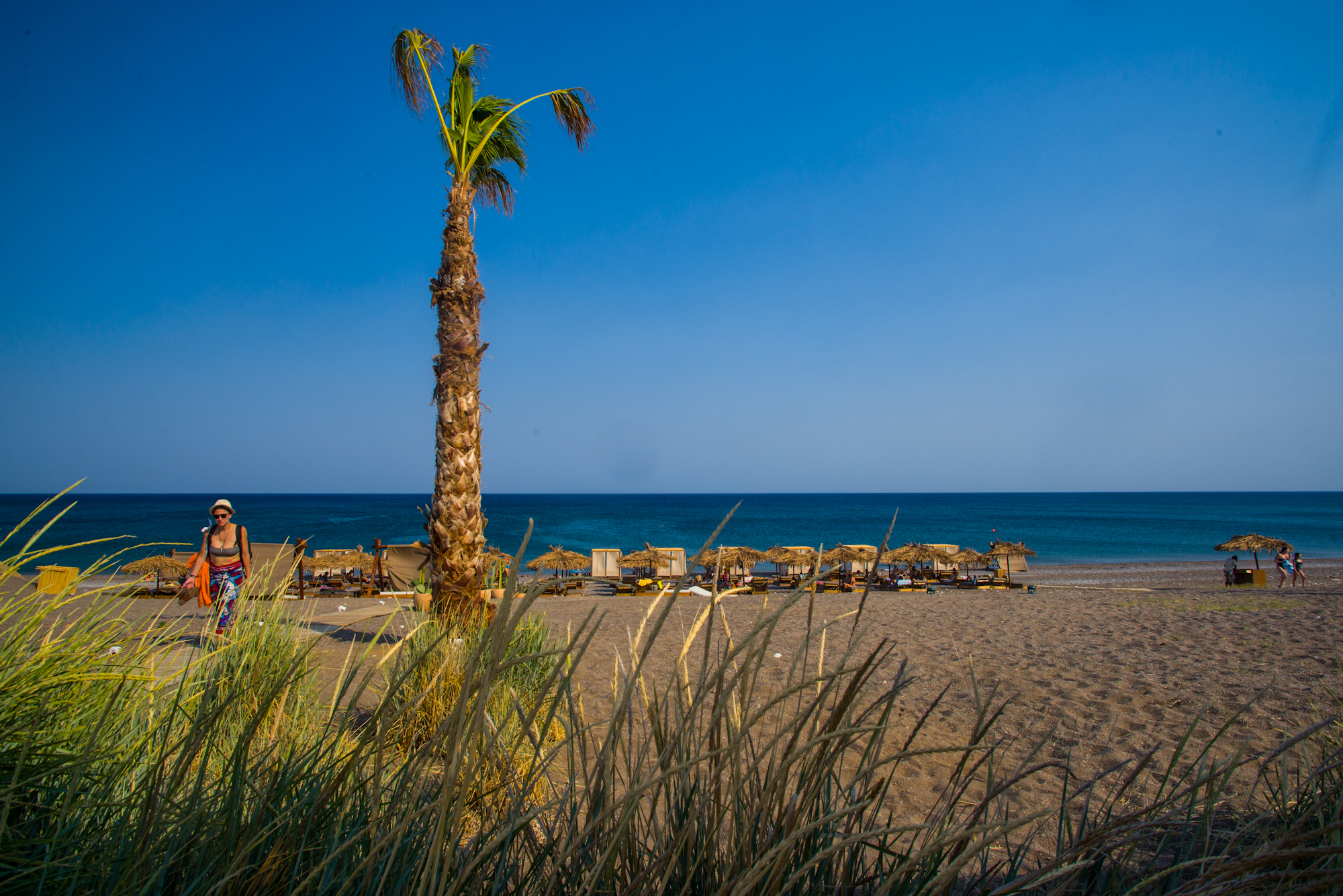On Rhodes’ serene southern coast, Lahania unfolds as a peaceful stretch of sand with some fine pebbles at the edge of its clear blue waters. This laid-back spot attracts those seeking relaxation and seclusion, rarely drawing large crowds, even in high season. Facilities are minimal, adding to its tranquil charm, although a couple of rustic beach bars provide refreshments nearby. Located around an hour’s scenic drive from Rhodes Town.